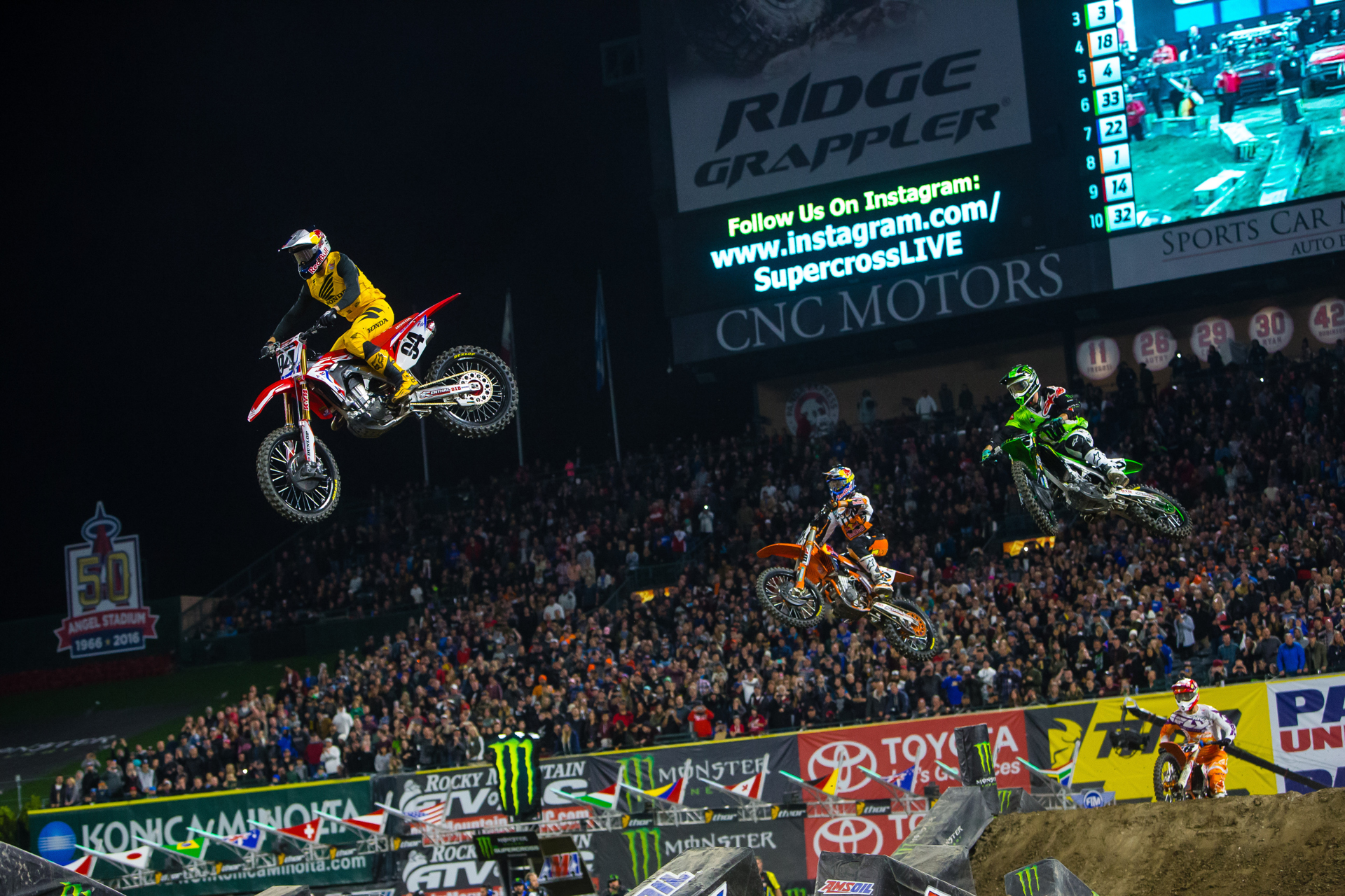 Our own Jeff Kardas and Rich Shepherd were at Angel Stadium for the season opener of Monster Energy AMA Supercross to capture all the action from press day to the main events. Here are 43 of their best photos from the opening weekend at Anaheim.