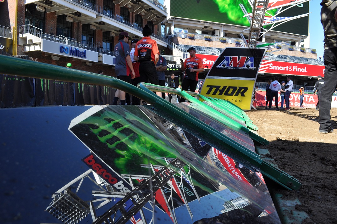 In other news, today is Military Appreciation Day, and many of the teams and riders will be donating items and gear used in tonight’s race to be auctioned off, with proceeds going to the USO (United Service Organizations). There’s also going to be a military holeshot challenge, where riders from different branches of the military will compete during tonight’s main event. The bikes they’ll be riding have been donated by the factories and will also be auctioned off.