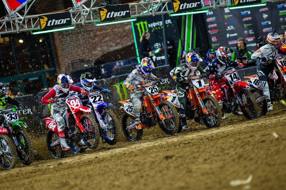 Timed races have replaced the traditional fifteen and twenty-lap main events in Monster Energy Supercross. That didn’t affect last week’s season opener in Anaheim, though, because the track produced one-minute laps, and both classes ended up running fifteen and twenty-minute main events anyway. But the track for round two at San Diego was shorter, and as the clock ticked away and the laps clicked off, the events moved into record territory, with eighteen laps for 250s and twenty-four for 450s.