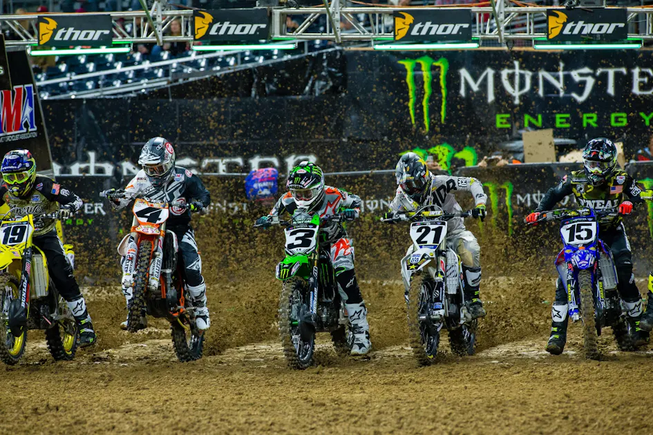 3 25 Marvin Musquin CLERMONT, FL KTM 450 SX-F- Marv about looped out on the first lap and if that would’ve happened he would’ve been ran over by the whole pack like Alessi at RedBud back in the day. It would NOT have been good. Thankfully he saved it and I’m sure he needed to change his Thor pants after the main. Two third-place finishes to start the year is pretty cool for Marv. Does anyone know why KTM doesn’t do up their bikes and gear for retro night or military night or whatever? I don’t really care, just curious.