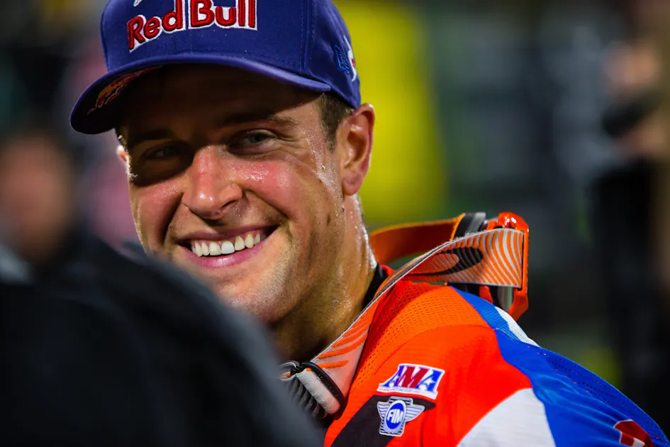 Dungey has figured out how to only think about the good, and not worry about the bad. You can see the results. In the past, he could get spun out and frustrated when settings were off or things went wrong. He told me if he made a mistake in the race, he would get mad at himself, which could impact the rest of the week. Today, he’s someone who can control those emotions, compartmentalize them, stuff them in a corner, and be at his best for (now) 20 minutes and one lap. On his worst days, he gives away nothing. And Anaheim 2 was shaping up to be one of his worst days.