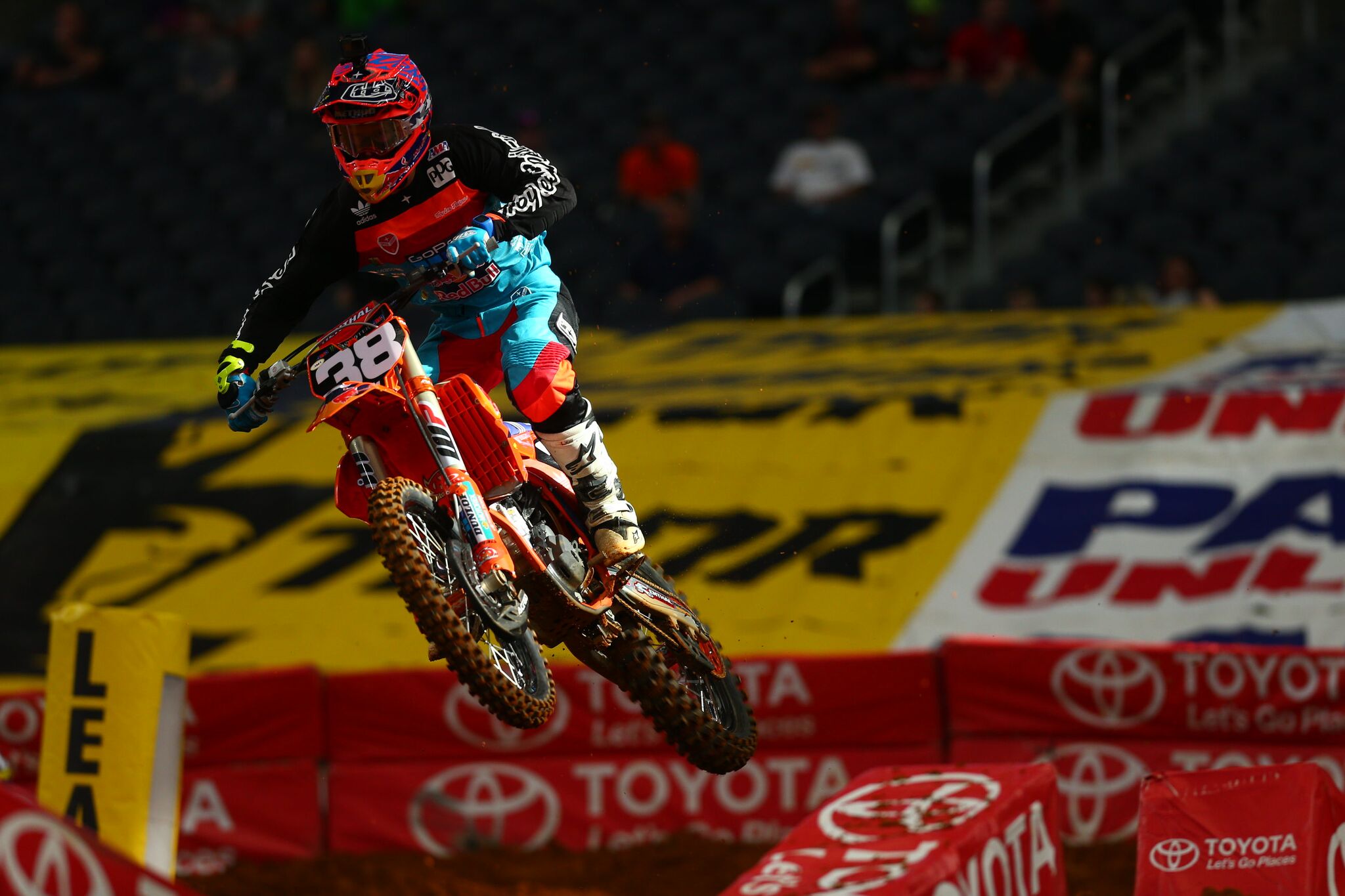 We’ve got another day race this weekend and this will also be the first weekend this year the race will not air on TV live so be sure to check back here to get the most up to date action. Eli Tomac has won two in a row and really seems to have found his groove. With his second win of the year last weekend, Tomac has tightened up the points to 17 behind Ryan Dungey. Justin Hill has won three in a row and as the new series points leader, he will be running the red plate tonight for the first time. Phil Nicoletti suffered an ankle injury yesterday during press day, and will not be racing tonight. For an up to date list of who’s in and who’s out for the weekend, check out our our weekly injury report.