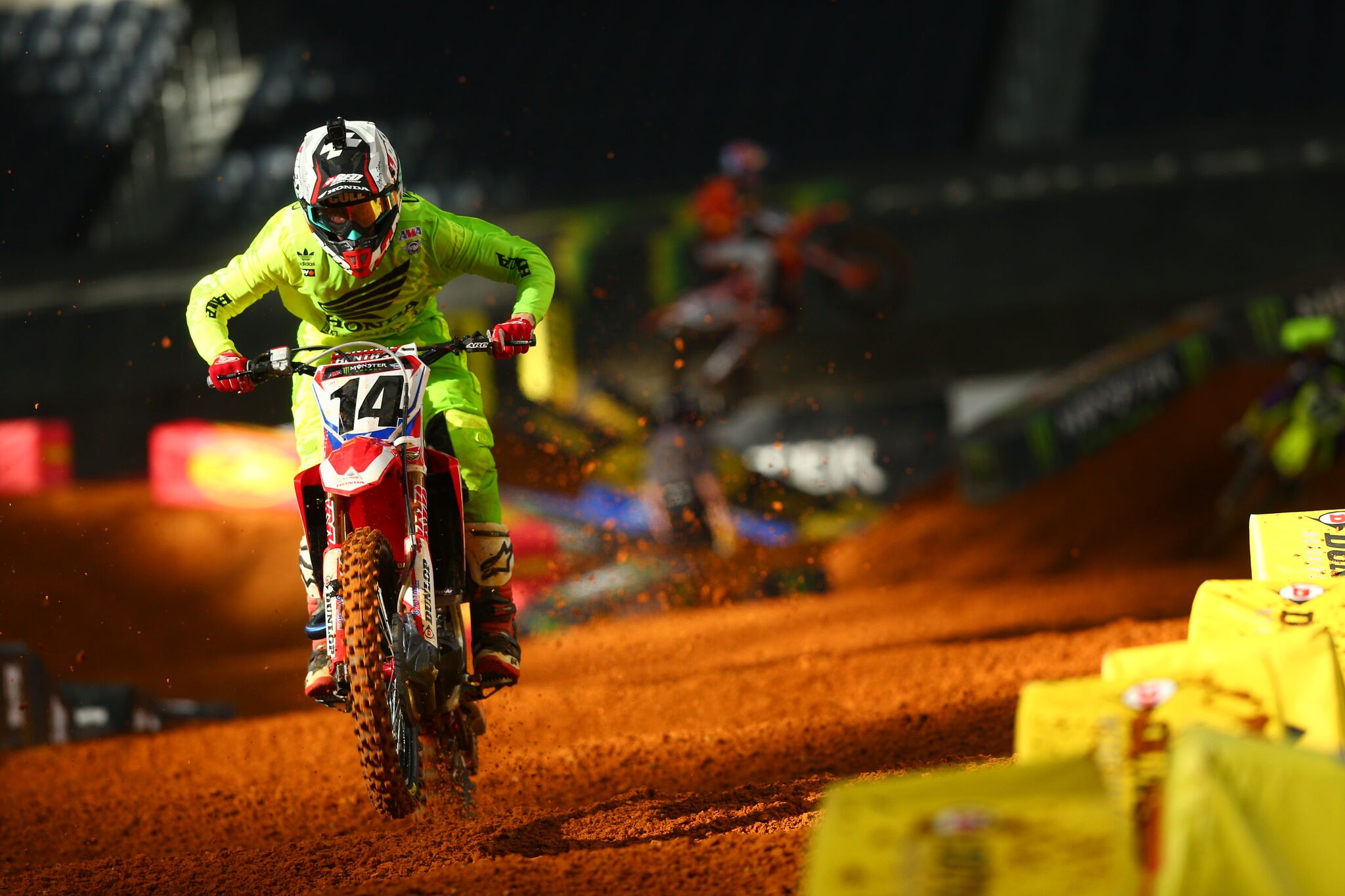 Chad Reed with the start and the win. During Reed’s post-race interview he said it was dangerous out there because of the sun. He even joked asking the fans to stand up and block the sun for the riders. Since then, that sun pocket has faded and a new one is starting. It will be interesting to see how that affects the main events.