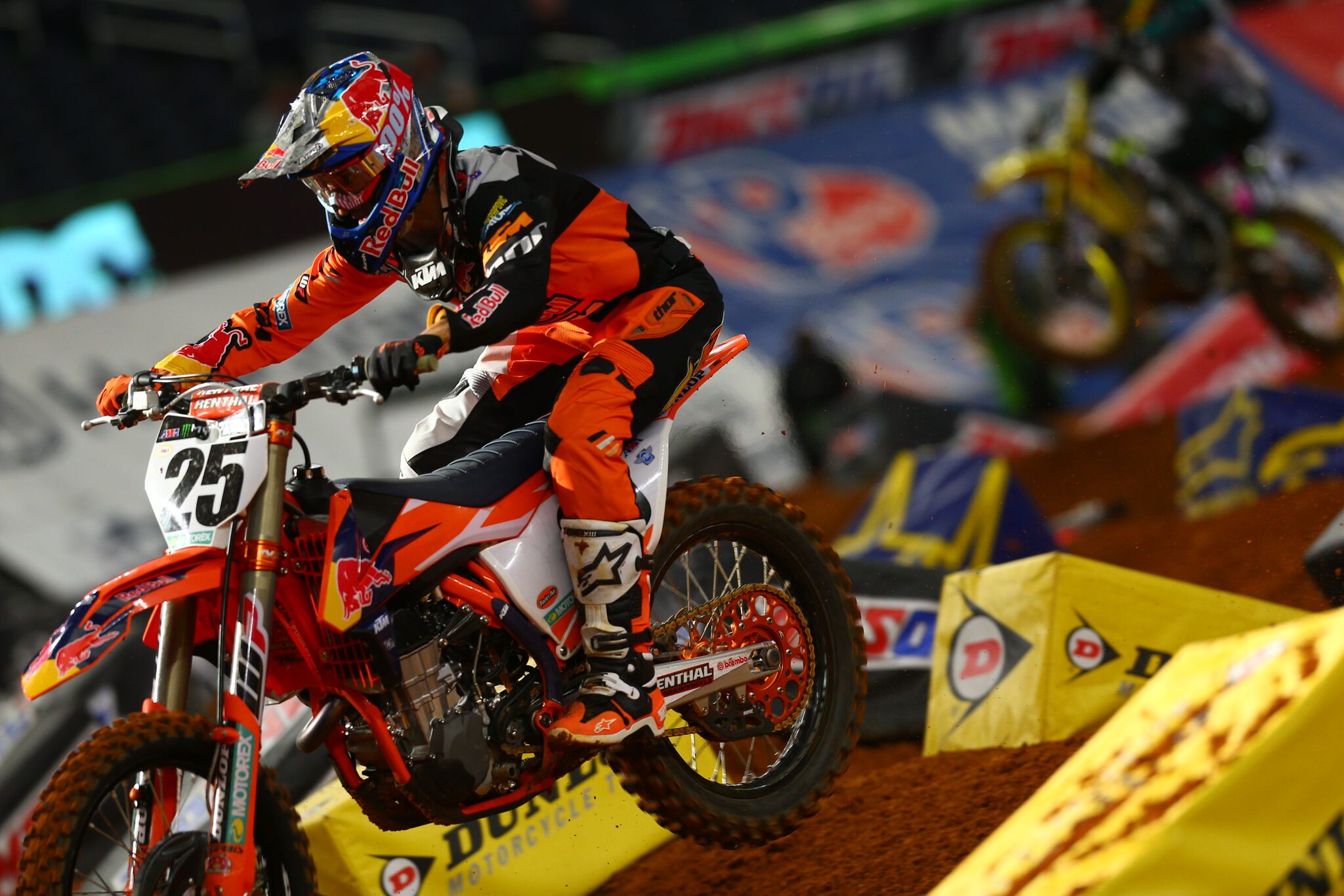 With four minutes to go Dungey caught the back of Wilson who was now in fourth. Dungey followed Wilson for about four laps before making an assertive pass with a small amount of contact. It didn’t look like there was really a good spot to make the move so when Dungey saw an opportunity, he took it. Reed somehow went down in the first set of whoops late in the race and with about two minutes to go he pulled in with bike issues as well. While all this carnage was going on, the race up front was actually quiet. Musquin was riding around out front by himself and took his first ever 450SX race win. Seely would finish second and Anderson third.