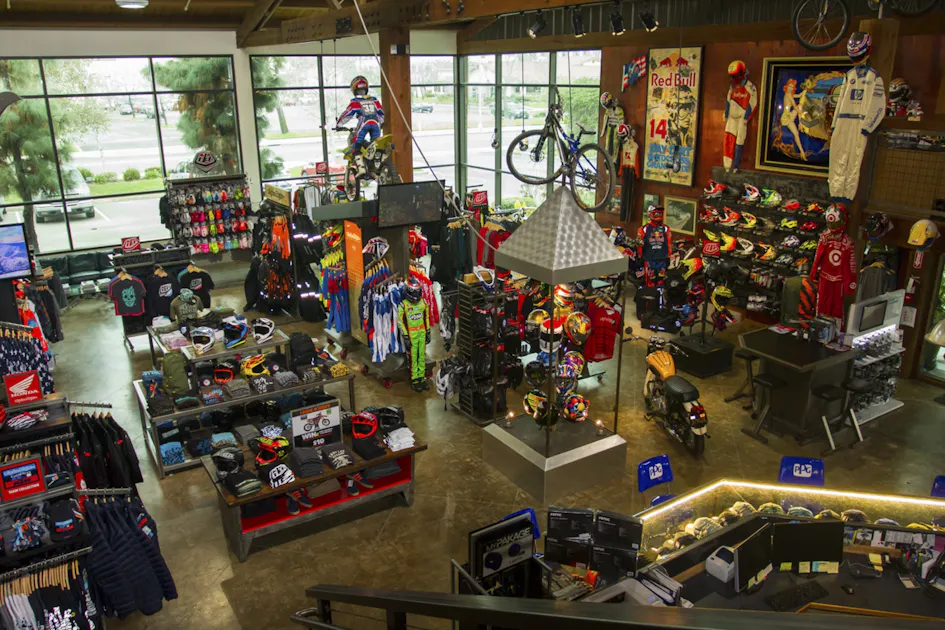If you ever find yourself in Corona I suggest checking out the TLD headquarters. Although you may not get the tour we did, their lobby is also a store/museum that is open to the public. From a collection of Jeremy McGrath helmets from his heyday, to historical motorcycles such as the one Travis Pastrana jumped into the San Francisco Bay at the X Games in 1999, to a funny car hanging on the wall, to custom painted guitars, to Notre Dame football helmets, this is a place that should definitely be on your bucket list of places to visit.