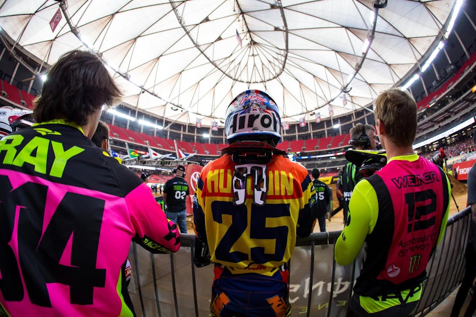 RJ Hampshire was the lone GEICO Honda rider in Atlanta’s main event, after both Christian Craig and Chase Sexton (more on them below) didn’t race the main event due to injury. Hampshire struggled on the track, and fell back to 10th late in the race after a crash following a top-five start. In a team press release, he said the biggest problem was the whoops. “It was a tough weekend. Struggled with the whoops from the start of the day and never really found a flow after that. I finished third in the heat race but felt like I was lost on my bike, was riding terrible. Got off to a decent start in the main, right around the top five and hung right around there till about five to go. I ended up going down on the landing of the finish and landed right on the hurt shoulder. So a bad night turned even worse. Had too many small mistakes all night that cost me big. But I’m okay—looking forward to Toronto!”