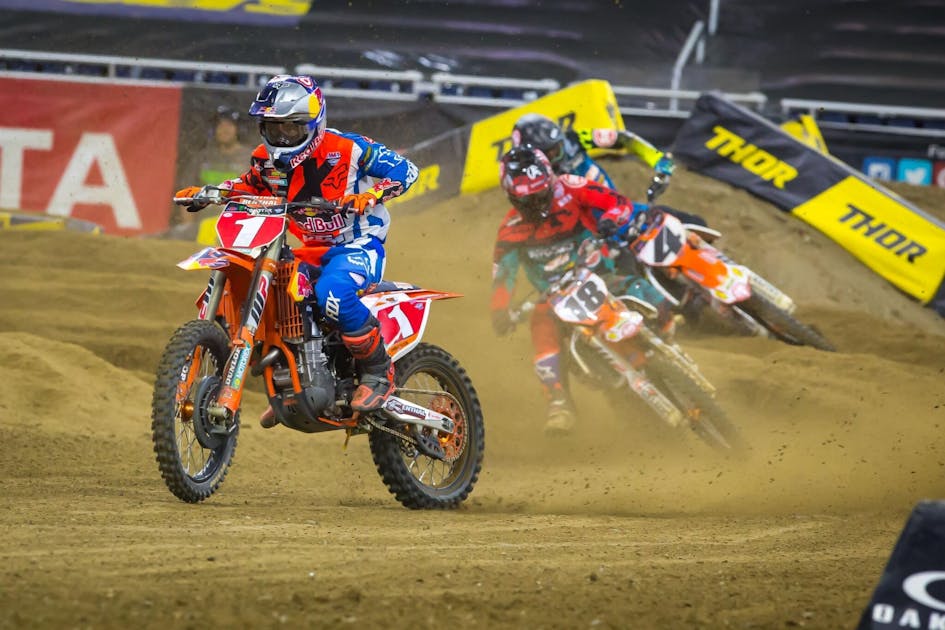 A big pileup on the start claimed a lot of top guys, including Cole Seely, Chad Reed, Justin Bogle, and Justin Barica. Reed would go down a second time later in the night and finished 22nd. Barica came back to 12th, while Bogle finished 18th. Seely, who won a heat race early in the night, came back to 10th.