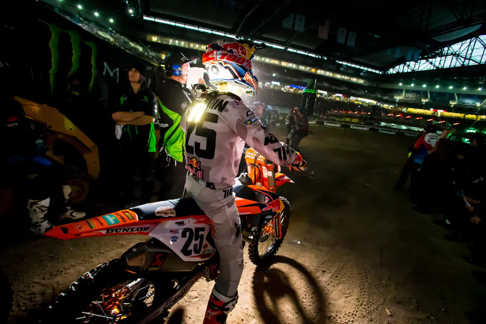 Jordon Smith had to go the LCQ after a questionable pass attempt on Kyle Cunningham but with the 18th gate pick, from the far outside, he pulled a good start and used some terrific riding to pass three top-notch dudes to win his first main event of the year. Last year Smith struggled on GEICO Honda, but the team still wanted to bring him back. Smith chose to leave and asked to get out of his deal and Troy Lee Designs/Red Bull KTM snatched him up.