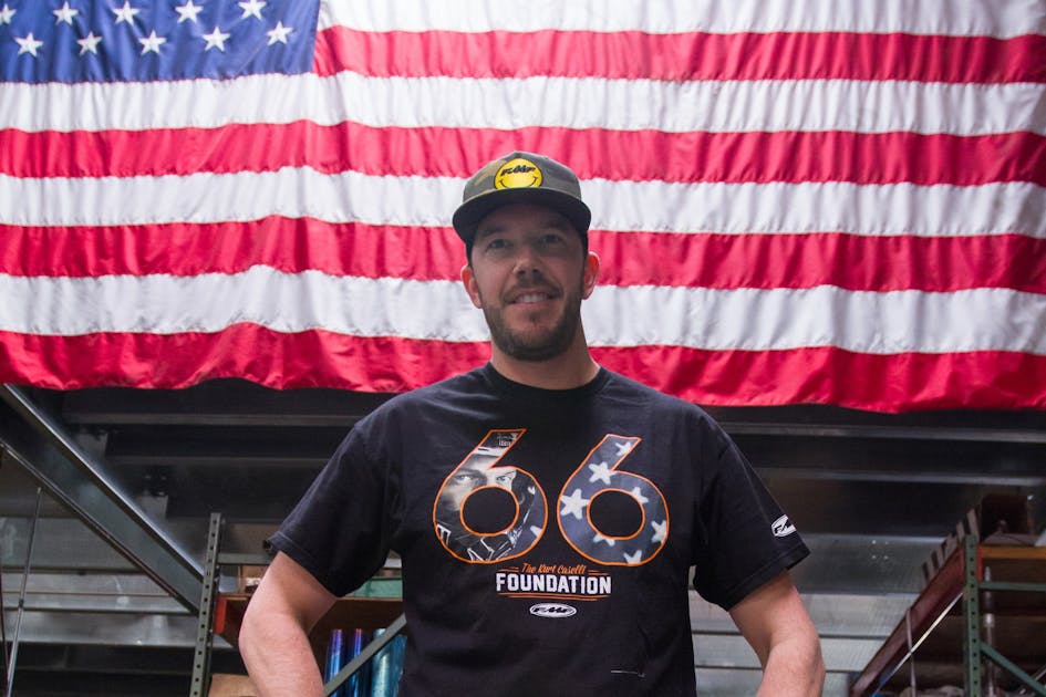 My first memory of actually working at my dad’s shop was every summer I’d go up when I was 10, 11, 12 years old and sweep the shop, put stickers on silencers. I always thought that was going to be a really fun job until eight hours later after peeling stickers and putting stickers on silencers, you kind of get over it. But he always kind of instilled hard work with me. I try to instill that in my employees and the rest of our business. We’re pretty small if you actually look around FMF. Our brand is really big, but we’re able to do a lot with not having … we have a lot of employees, but we don’t have as many as some people might think. My day to day business now is working on business development stuff, new business for us, whether it’s working with companies like KTM and Husqvarna, working with all the race teams from off-road to supercross, and handling all the marketing. Everything that has to do with the logo, my team. We hammer it out.