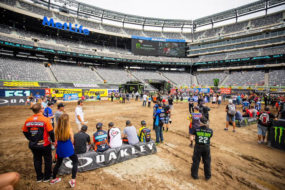 Firs though, the name. I know Feld wants to call it “East Rutherford SX” because that’s the county name in New Jersey where the stadium is and they probably got a deal to rent it, but part of that was to give the county some nice PR. I must have missed it when the East Rutherford Giants won a couple of Super Bowls a few years back. And I might go with New Jersey SX but the stadium is where the NEW YORK Giants and NEW YORK Jets play. In the end, the supercross is in East Rutherford, New Jersey, because of New York City being located right next to it. That’s why it’s there so don’t fool yourself. The citizens of Newark aren’t exactly packing MetLife Stadium, you know? I asked Jason Weigandt, who’s FROM NEW JERSEY, what to call it (you know like how the media is asking Native Americans about the Redskins nickname? It’s just like that.) and he said that New York City is why the stadium exists, so even though it’s in Jersey, it’s the New York Supercross to me. The native Jersey son has spoken.