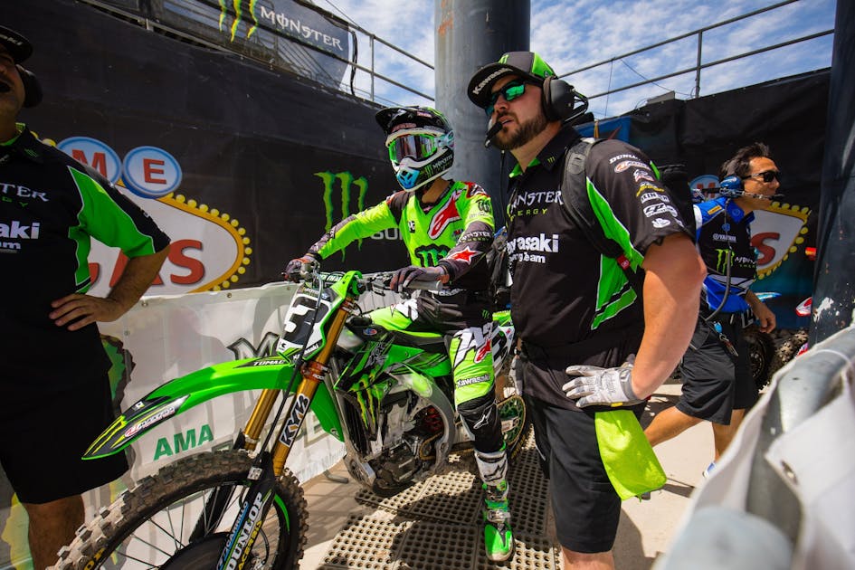 While the Red Bull KTM truck was going crazy over Dungey’s trophy I headed over to the Kawasaki compound in the pits to check on the other side. The atmosphere was much different. They were not happy.
