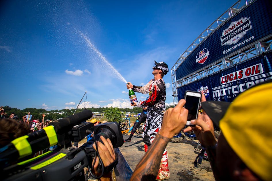 After struggling at Thunder Valley due to an illness, Zach Osborne was back to his normal self this weekend. From nearby Virginia, Osborne rode the track a lot as an amateur and even picked up his first career moto win here last year. In the first moto he ran away with the win, but in the second moto he was forced to come from the back to pick up a second for second overall. Once he passed Alex Martin for second, Osborne tried to rip of his goggles but struggled getting them off and then took Martin high in following corner so he couldn’t pass him. He explained what happened post-race.