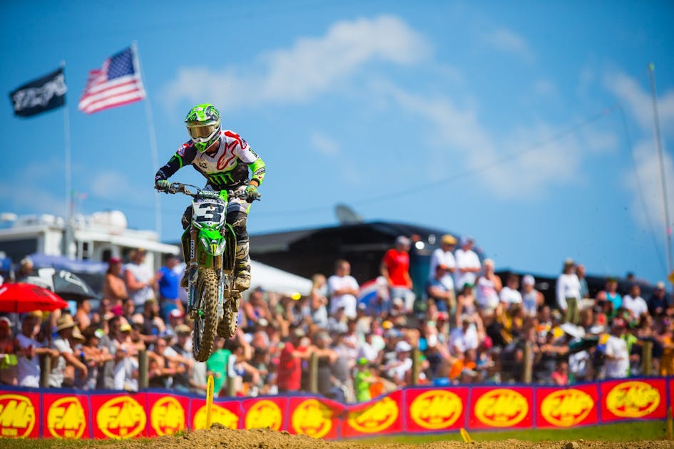 “The day started off great,” said Grant in a Kawasaki statement. “My starts were on point today with pulling a holeshot in the first moto and finishing third again. I got another great start in moto two, but just had a few little mistakes that held me back from the podium.”