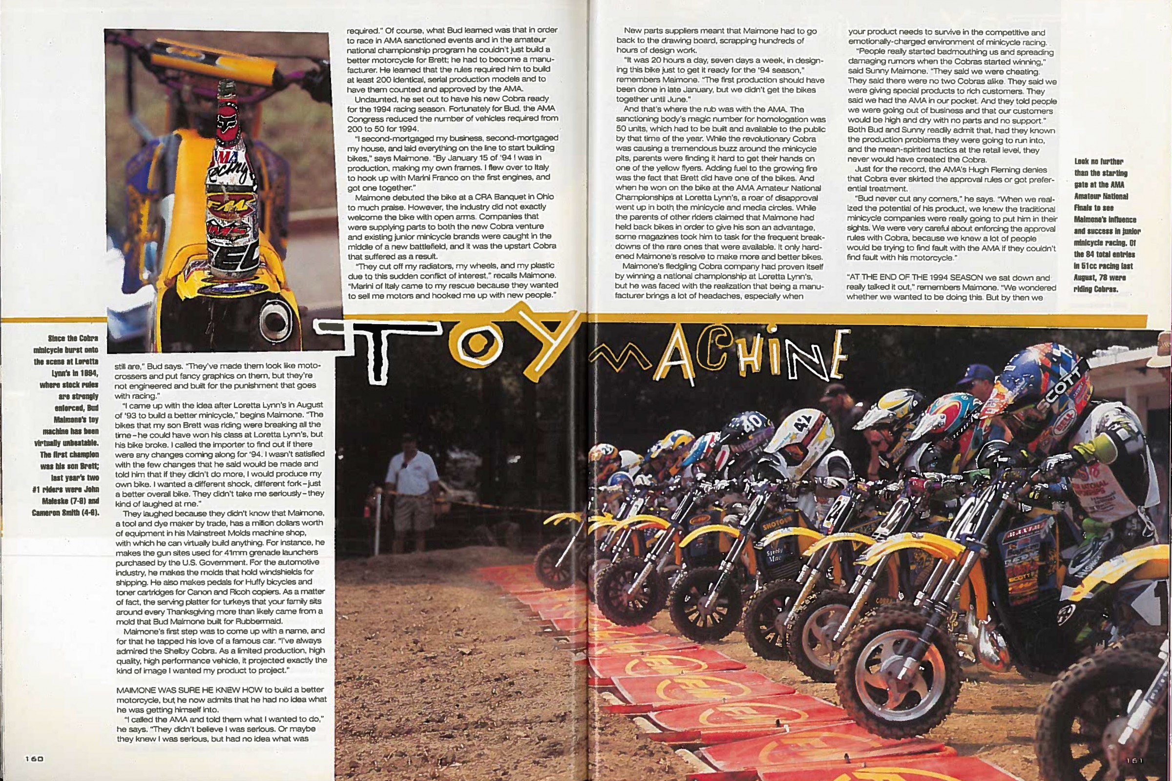 “Bud never cut any corners,” said then-AMA Amateur Racing Manager Hugh Fleming to Racer X in ’99. “When we realized the potential of this product, we knew the traditional minicycle companies were really going to put him in their sights. We were very careful about enforcing the approval rules with Cobra, because we knew a lot of people would be trying to find fault with the AMA if they couldn’t find fault with his motorcycle.”