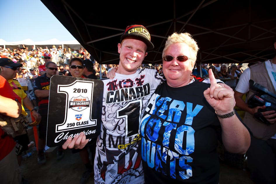 Canard’s 250MX days featured some good races, but also some bruising injuries, like a broken femur while batting Ryan Dungey and Ryan Villopoto at Washougal in ’08, and a broken wrist while leading High Point in ’09. He started the 2010 campaign by holeshotting the first moto and fading back to seventh, hardly a championship-style beginning. A podium and some laps led at Thunder Valley signaled a turnaround. That’s where the comeback begins.