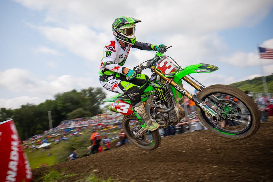 Ten-five scores and ninth overall were not what Monster Energy Kawasaki’s Eli Tomac was probably looking for on a muddy day at Unadilla, but he remains in control of the 450MX standings with 27 points on Blake Baggett, and 31 on Marvin Musquin. After the race our Steve Matthes caught up to Tomac to talk about a muddy day, and also his thoughts on bowing out on the Motocross of Nations this year.
