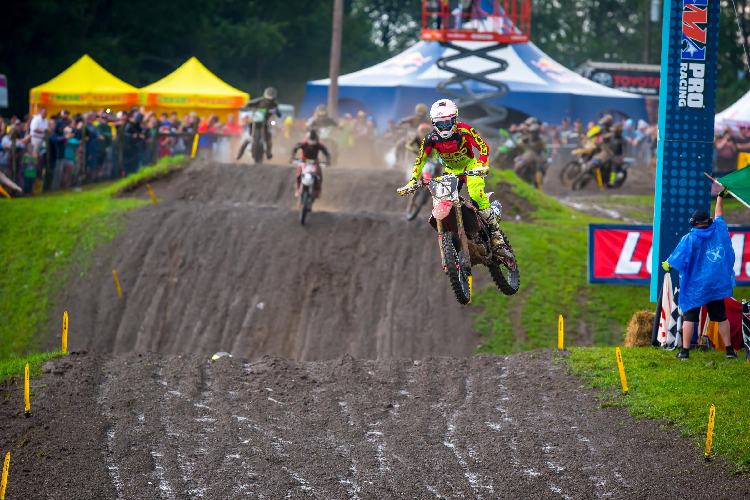 Martin: A little bit of both. Working on some things just off the bike as well. Just trying to get a little bit more—obviously it’s the end of the season so you can’t get much more fit, but just trying to do a couple different things differently. My parents had a local race. They had like 500 riders on the weekend off. So, on Monday and then on Tuesday of this last week I tested. So, there was like three or four ruts in every corner and I was like, we’re going to tune this GEICO machine in a little bit. We were able to make little percentage gains in the fork and shock and take the edge off. I felt like it helped today. Obviously, the second moto, it was just survival, like Joey said. It was all in the start.