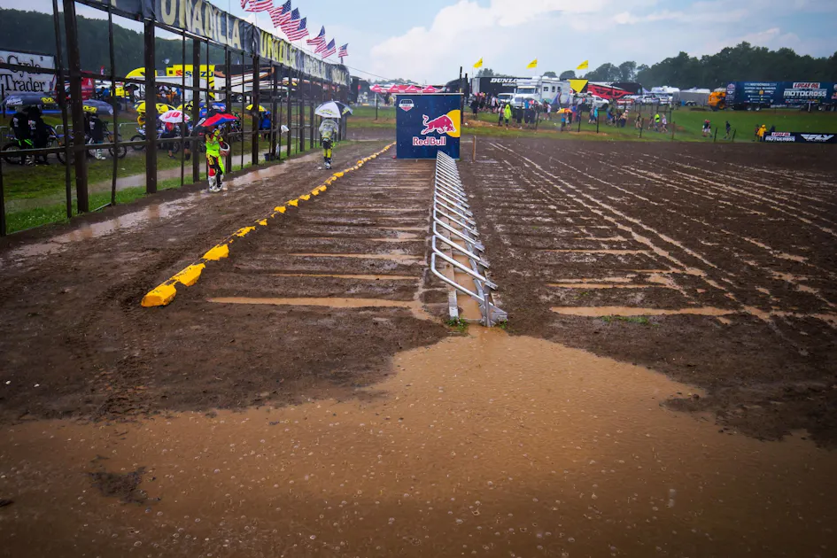 Little bit of a nutty Unadilla National this past weekend, round 10 of the Lucas Oil Pro Motocross Championship. We had a little bit of everything: a primo track for practice (a couple riders told me afterwards it was the best they’ve ever seen it), a good first 250MX moto, some rain and lightning in 450MX moto one which caused an early red flag, a delay before the second motos, and then finally, two complete mudders to end the day on a shortened track. All we needed was a clown car to ride out onto the start straight and we’d be set.