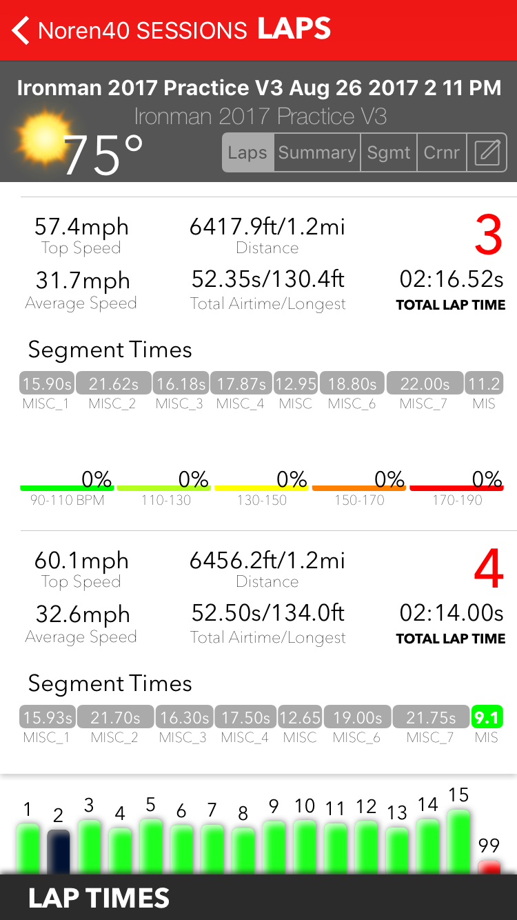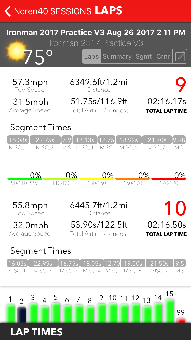I got the chance to shadow Fredrik Noren this past weekend for a video we are doing, and he happened to be riding with a LitPro on his helmet for the practice sessions and first moto. Noren was kind enough to share his data with us so you guys get a glimpse of what some of the pros use to help improve their times at the track. Unfortunately, Noren wasn't wearing a heart rate monitor during the race so we don't have that information, but there's still some cool stuff! [Note: Ignore the title of the session, this is data is from the first moto.]