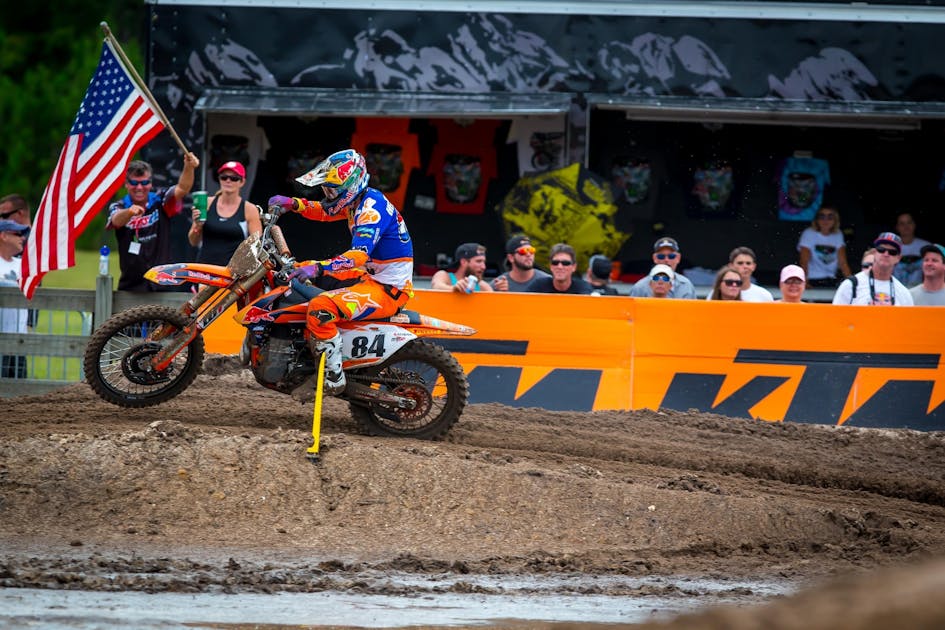Herlings did celebrate for the second time in eight days and further establish his flowering profile as one of the fastest motocrossers in the world. Tomac did emerge from a Saturday funk to disappear with the first moto and GEICO Honda’s RJ Hampshire did survive the conditions (despite a first moto fall and claiming he was “hurting” toward the end of the second) to post the most notable win of a young career to-date.
