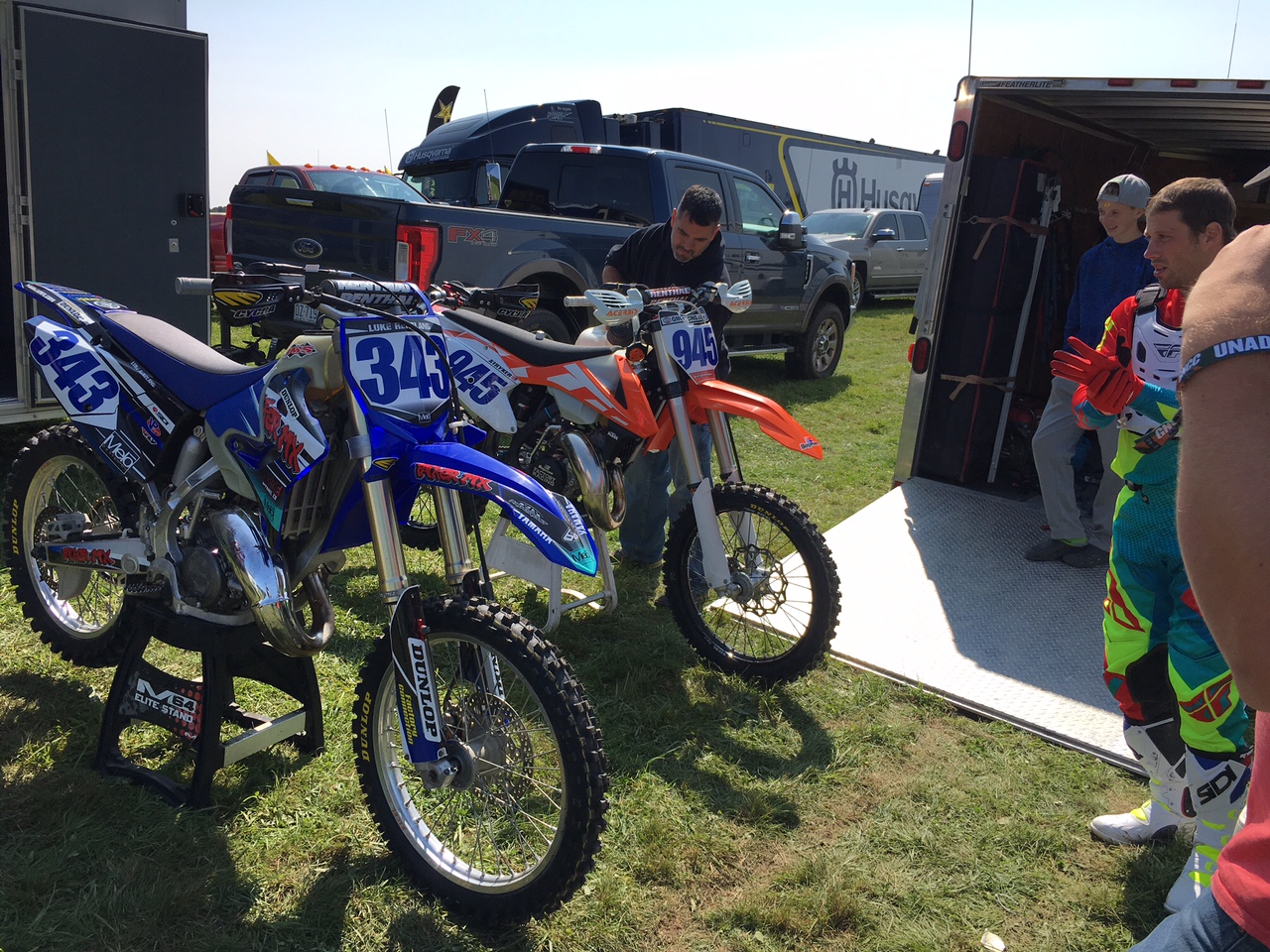 Stryker and I got to the track at 7:30 a.m. on Saturday and unloaded our pretty 125s. We planned to put about 20 minutes on the bikes to make sure everything was running good and to get a feel for them before race time. Both bikes started first kick and they sounded just as good as I imagined. We entered the track and couldn't contain our excitement ... the work was done and we were ready to race! It was all a dream until two laps went by and my bike bogged and a nice, loud crunch came from the engine. Stryker pulled to the side of the track with me and we were silent with disbelief. We had gotten so close, but now we were reset right back to the starting point! Now I had to find a bike that was ready to race within eight hours. I thought the dream was once again ruined. As I disappointingly pushed my bike through the pits past all of the students, a young kid riding a YZ125 approached me and asked what the problem was. I shrugged and jokingly told him I would be glad to ride his 125 for the weekend. To my surprise, the kid perked up and told me he would be right back. Two minutes later, he and his dad rode a 125 over with a “FOR SALE” paper plate taped to the number plate and told me I was welcome to use the motor. The father let me know it had a brand new engine top to bottom, and it was race ready. I had a smile ear to ear and thanked him up and down. Stand up people like that are hard to come by! The dad's name is Dan and his son is Ian Kearon who is a schoolboy rider that absolutely rips. Next, I called my brother Kody to let him know it was time to do an engine swap while I worked 9-5 on the track with the students. He swung by to pick up both bikes and he was off to the shop to get it done. Eight hours later, Stryker and I headed back to his shop to meet up with Kody. We helped him put the finishing touches on the race bike and loaded the trailer. We had it packed and ready to go by 7:30 and headed north to Unadilla.