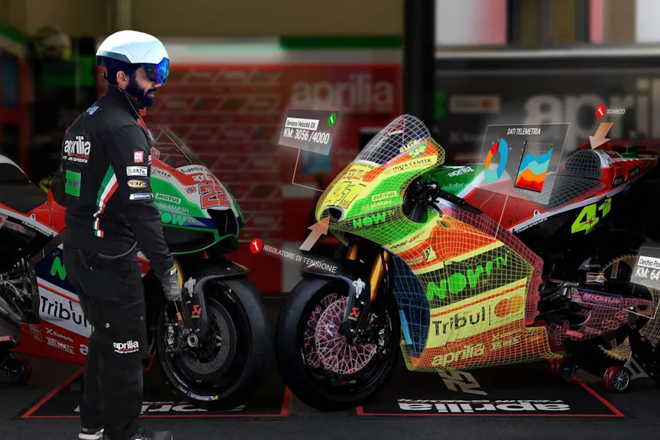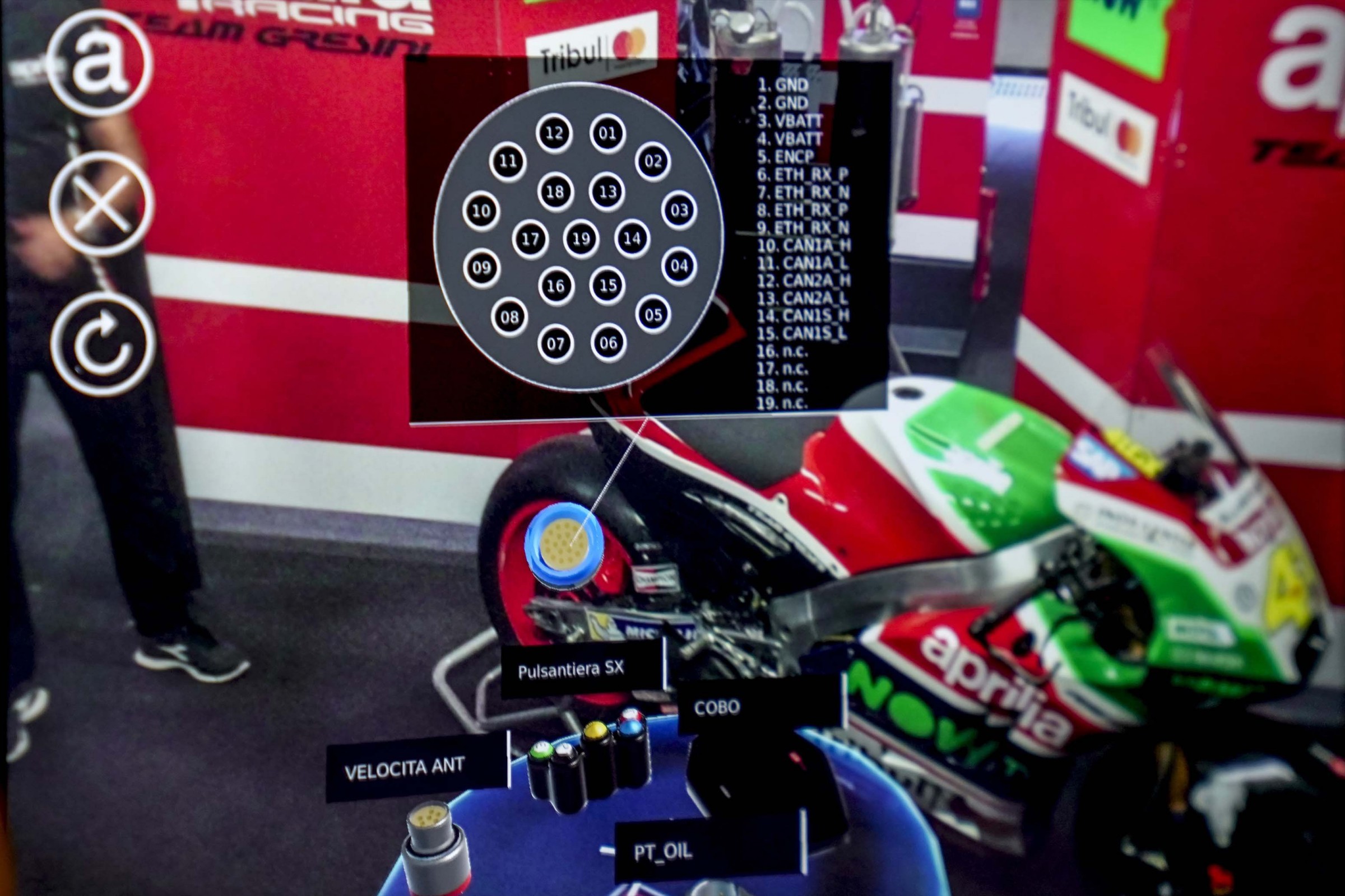 With AR, Aprilia mechanics are able to visualize content related to motorbike and infographics that respond to the user’s control in real time.