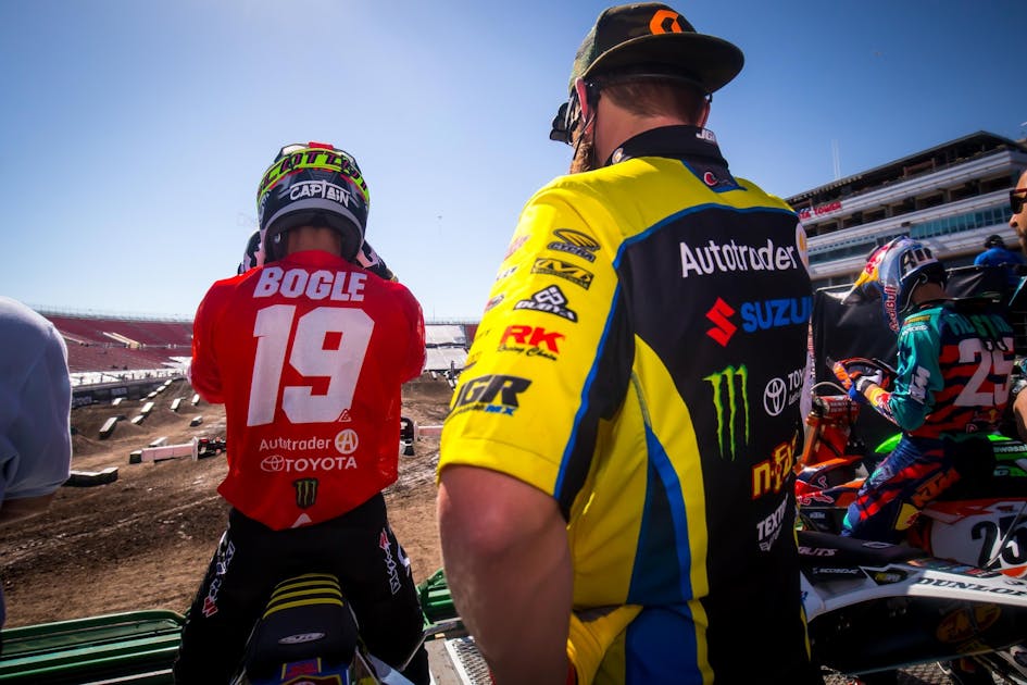 In the first main event at the one-off race, Bogle was coming back into the stadium—one of the fastest parts of the track—into a difficult rhythm section when another rider, Justin Hoeft, bobbled and cross-jumped into his line. Bogle tried to avoid Hoeft, but collided with him in mid-air and immediately went down in a heap. The race was red flagged as the Alpinestars Mobile Medical Unit attended to him. Bogle did not compete in the remaining two main events.