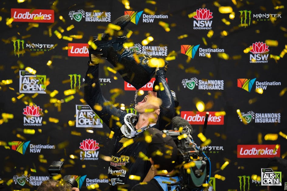 Rockstar Energy Husqvarna’s Dean Wilson had a spectacular weekend in Australia, winning the SX1 main event on Saturday at the AUS-X Open and then finishing runner-up to teammate Jason Anderson on Sunday.