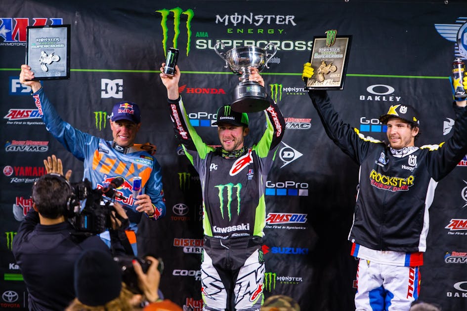 After that, the script was crumpled up, torn, shredded, and burned. The ashes were buried at sea. The 2017 season turned into an emotional rollercoaster, with both 450 titles going down to the final round. This has not happened since 2011, when Ryan Villopoto took both titles to the finale, in a season so good Feld Motor Sports hung banners from Sam Boyd Stadium proclaiming it to be “The Greatest Season in Supercross History.”