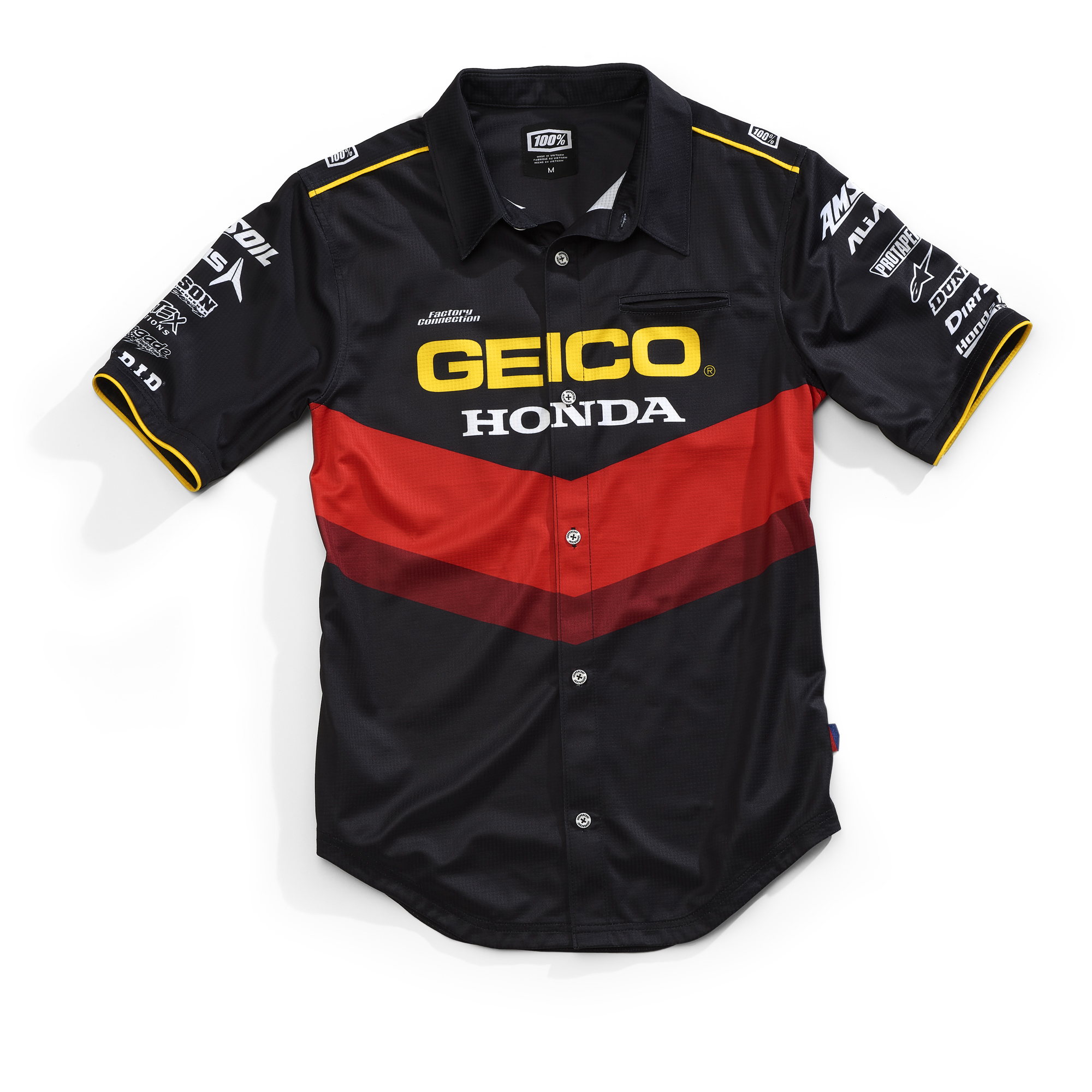 The partnership that began with 100% being the exclusive goggle for the team since 2014 grew last season, when 100% became the official team wear of GEICO Honda. Through this came a complete range of jackets, sweatshirts, t-shirts, headwear, and collectibles.