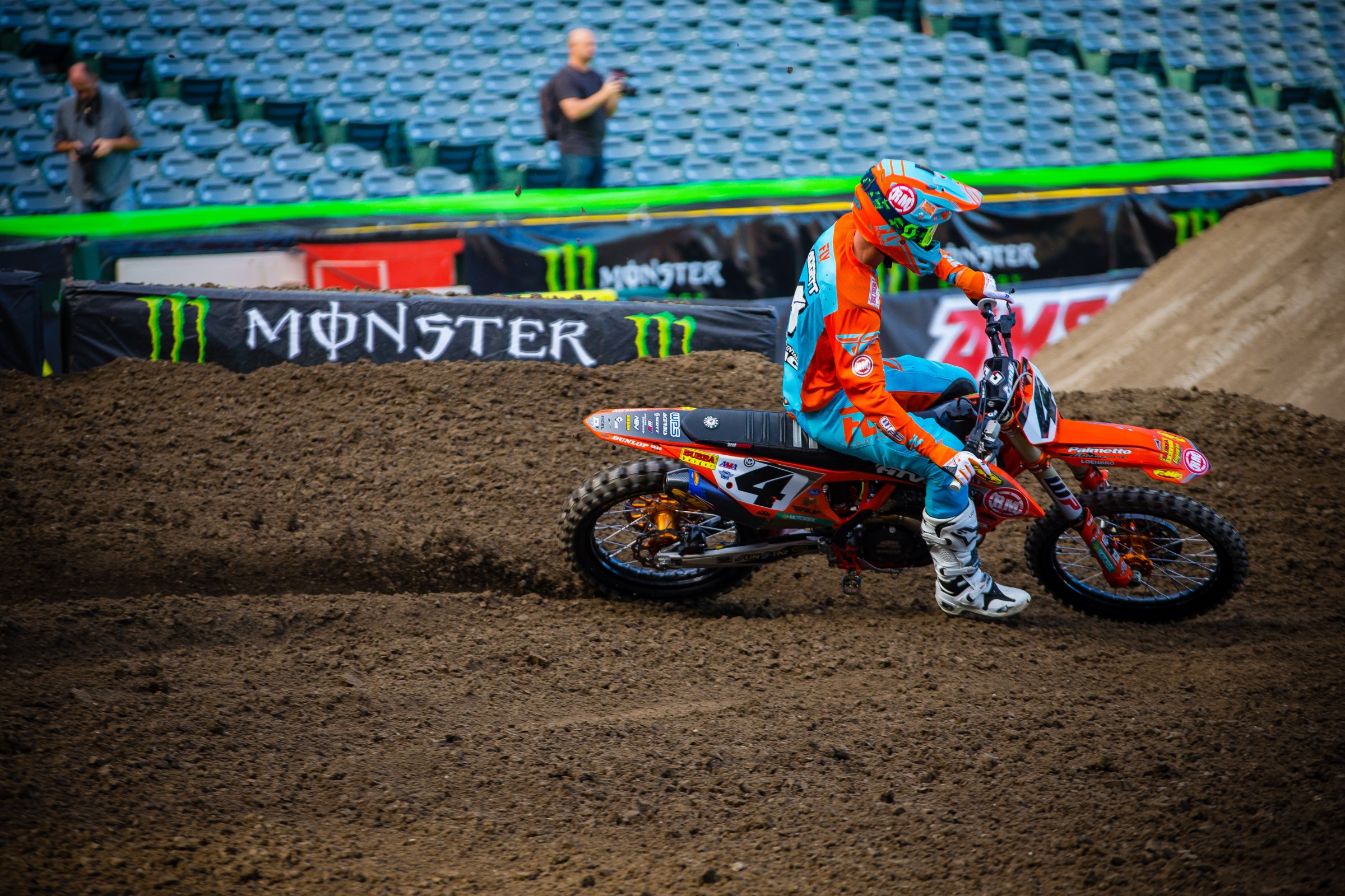 Just like in the first qualifier, it wasn’t long before Adam Cianciarulo climbed to the top of the board. And, just like in the first session, Justin Hill took a while to attempt a fast lap. When he did, it was fast, a 53.352, but not quite fast enough to beat Cianciarulo’s 53.179. After that not much happened until the qualifier was about to come to an end. On his final lap, Hill put his head down and ripped his way to a 52.903, the fastest 250SX lap of the night. Had Hill been in the second 450SX qualifier, that lap would have been good enough for fifth fastest!