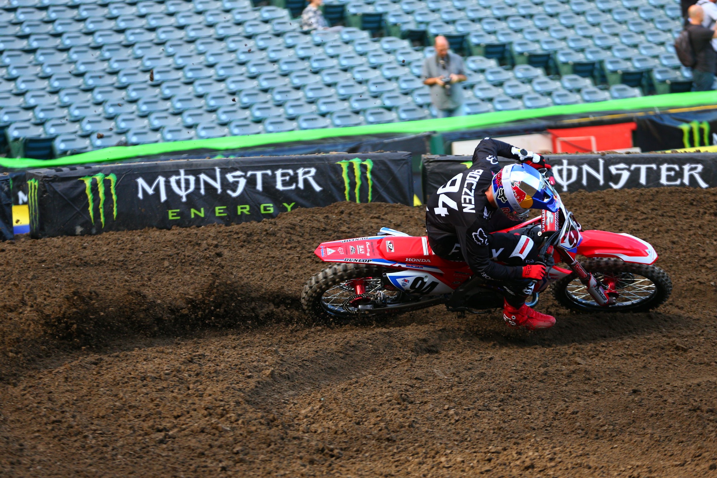 Speaking of Chad Reed, yes, he’s here, and yes, he’s racing. By his own admission—he told us he was out of shape in yesterday’s press conference—he’s not nearly where he’d like to be in terms of preparation, thanks to an ankle injury suffered at Red Bull Straight Rhythm. He also told us it’s his goal to become the oldest racer to ever win a supercross, so clearly, he’s not here to just ride around. No matter what happens, it’s good to have him back for at least another season.