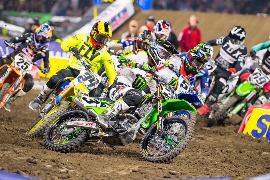 For just a moment, all the hype and buzz surrounding the always-tense Monster Energy Supercross season opener at Anaheim was about to cease. Eli Tomac jetted into the early lead on his Monster Energy Kawasaki and slowly began to distance himself from the field. For the man that had won nine races last year and came so close to the title, this looked like a shot across the bow, an early statement to show that maybe he had things under control in a season that was supposed to be so unpredictable. Then, such calmness ended abruptly. Tomac went over the bars, and Anaheim, and the 2018 season, went back to full crazy.