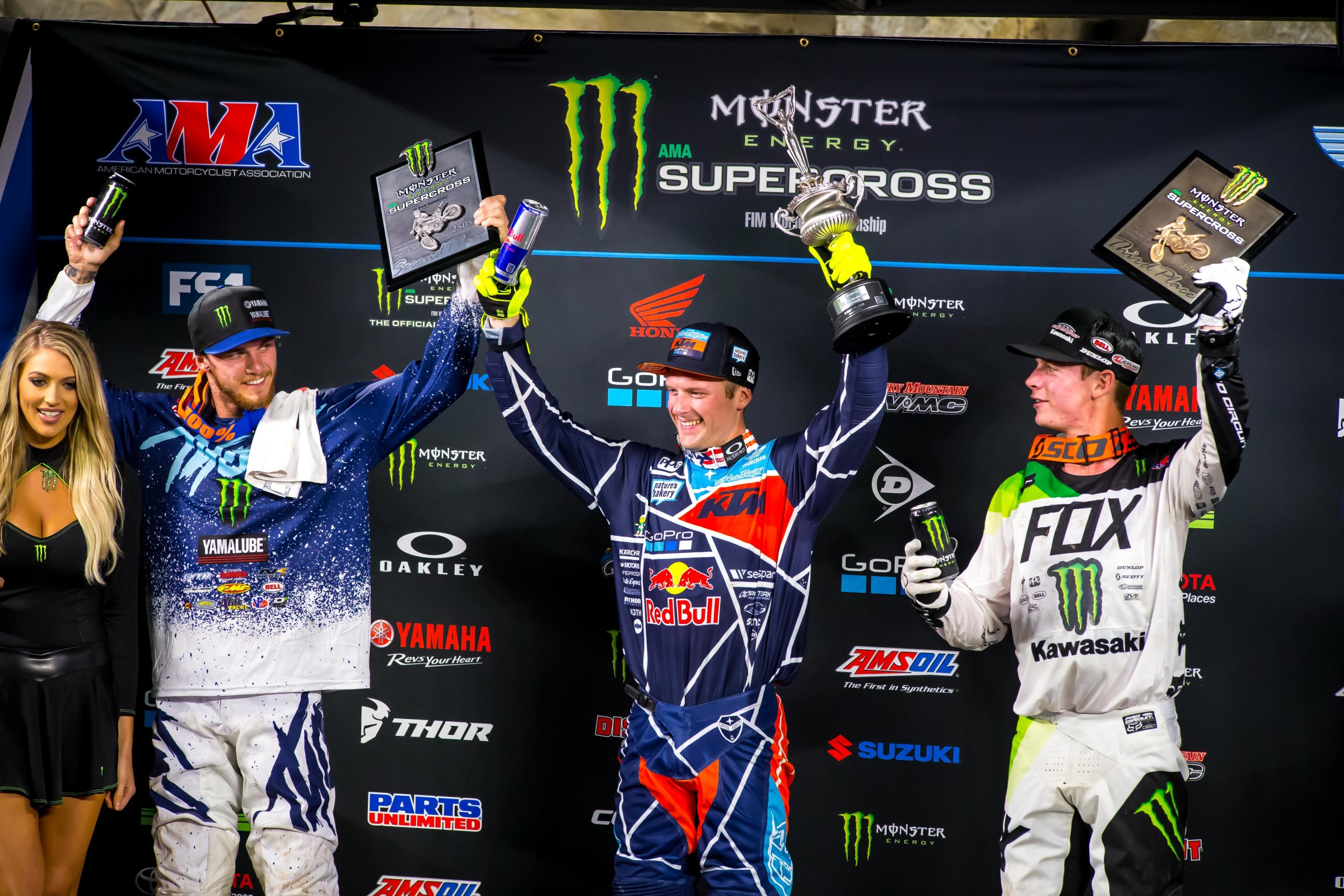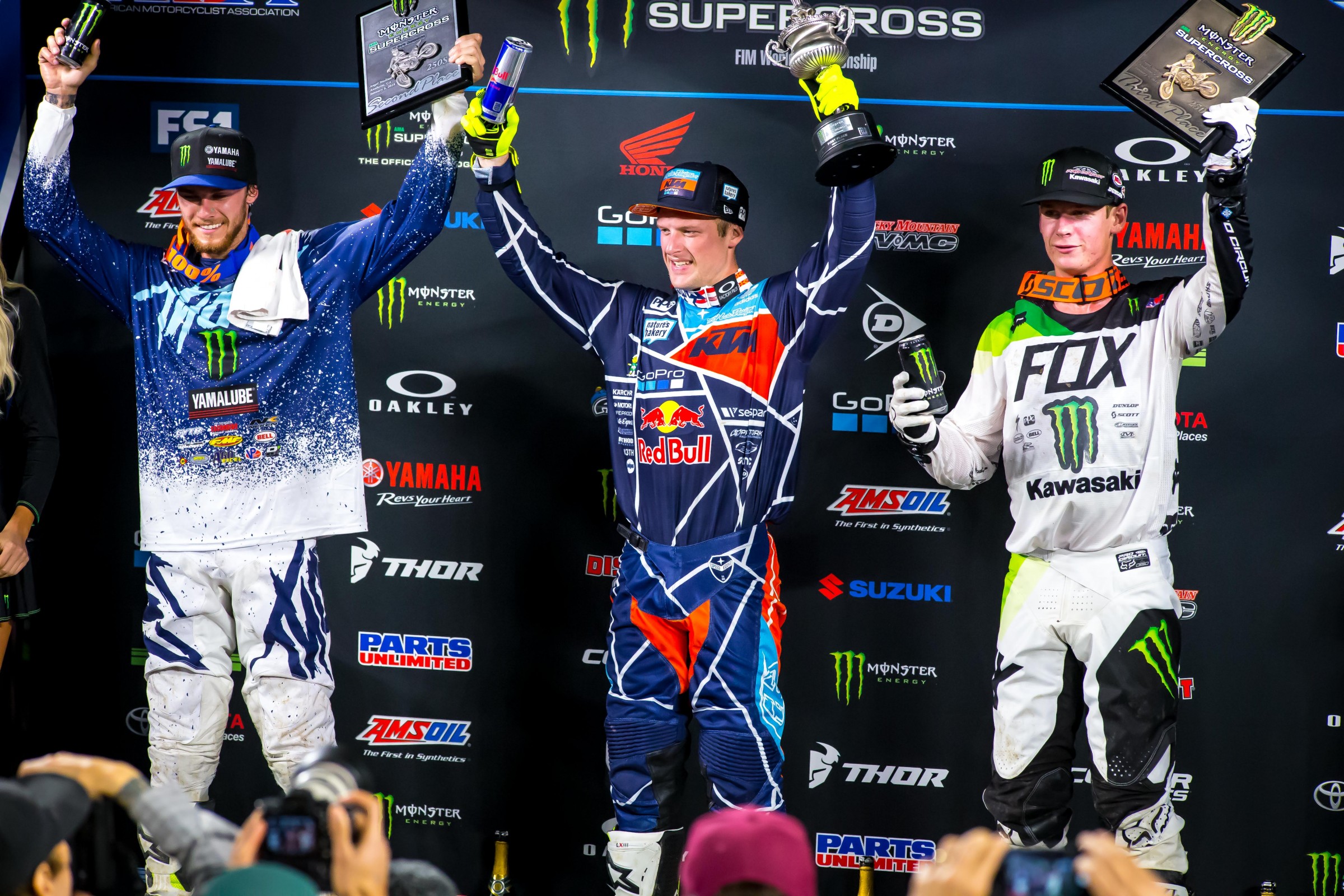 In the 250s, Troy Lee Designs/Red Bull KTM’s Shane McElrath is the king of Anaheim 1 now, taking the win for the second year in a row. He topped Monster Energy/Yamalube/Star Racing Yamaha’s Aaron Plessinger and Monster Energy/Pro Circuit Kawasaki’s Adam Cianciarulo.