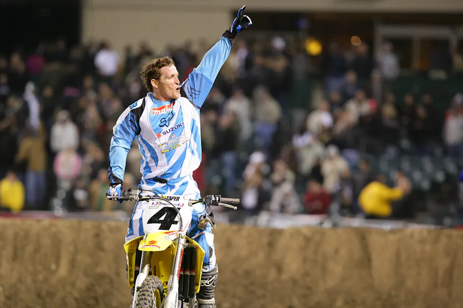 Suzuki’s Ricky Carmichael wins a thrilling Anaheim 2 showdown with Yamaha’s Chad Reed and Kawasaki’s James Stewart while Monster Energy/Pro Circuit Kawasaki rider Grant Langston takes the Lites class win.
