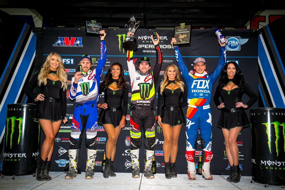 Eli Tomac: It just took me a while to get the rhythm. We were struggling putting whole laps together in practice. It was actually almost every practice, really. The last practice we rolled off the track, I think, in eighth. It was a little bit of an eye-opener for me. Just wasn’t being clean and kind of took that to the heat race, too. But we kept our heads up and never thought we were out of it. Went out to the main, got a good start and just tried to put the laps together. It was a really, really tough track. It was demanding with those big triple-triples. All three of us, we were hauling the mail.