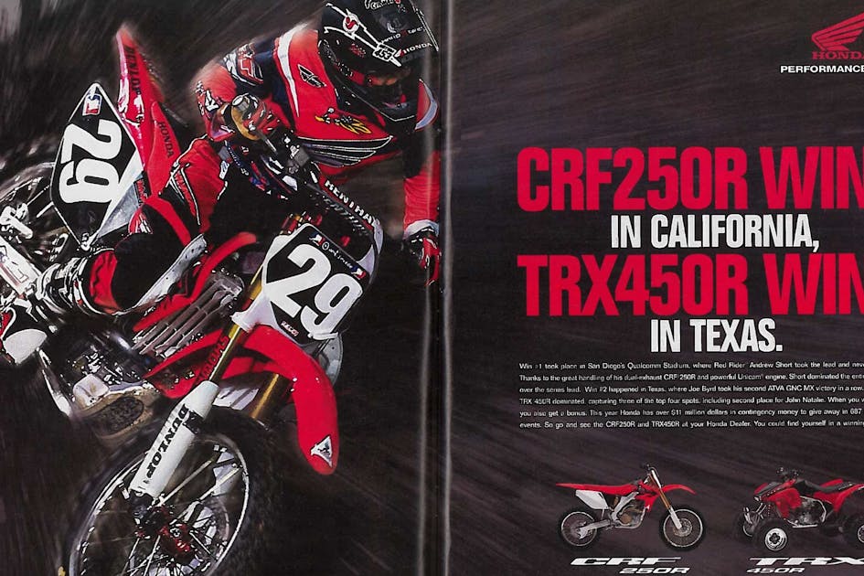 That done, the racing went on and Stewart actually had a superb night, passing Suzuki’s Ricky Carmichael in the main event after 18 laps of stalking the defending champ to take the win, with Chad Reed finishing third on his Yamaha.
