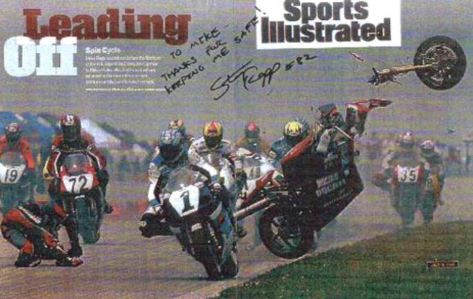 I didn’t see anything. His bike actually hit my head. I just heard somebody on my inside, the throttle wide open, and then I got hit. At first I thought things had got very crazy. I couldn’t see. I was dazed, too. I was just trying to get my bike, and my bars were about to fall off!