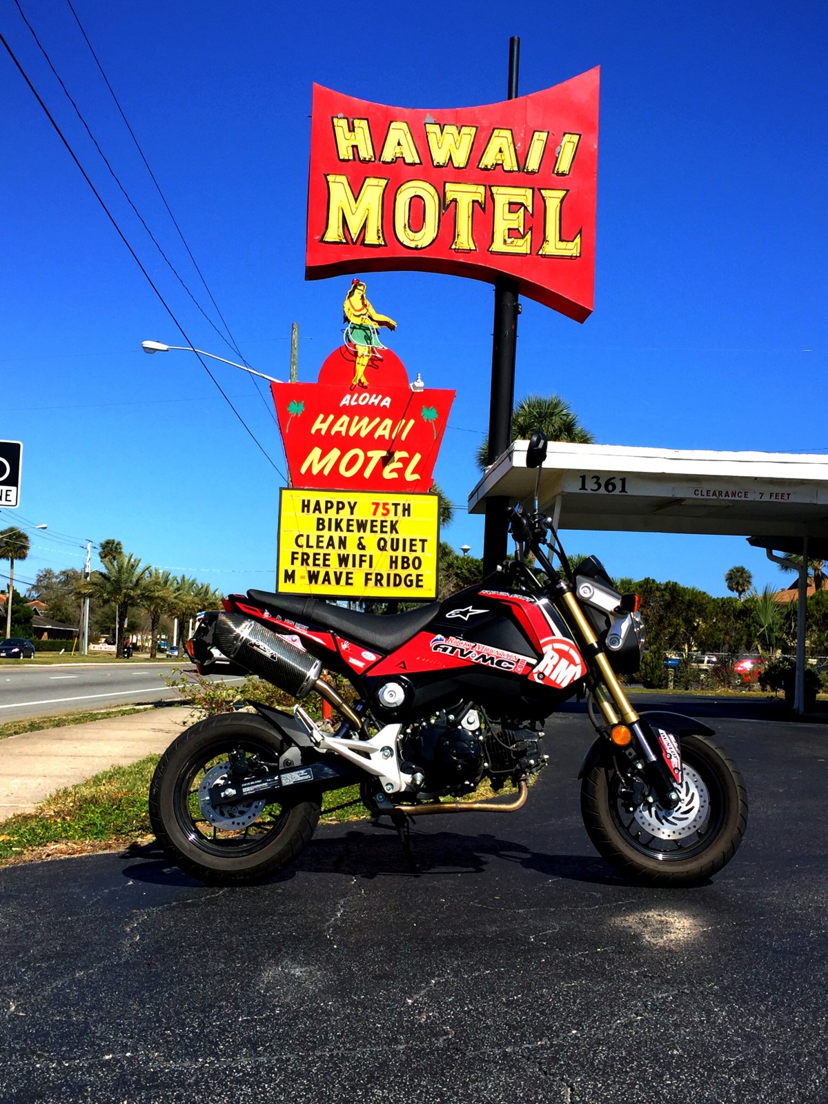 It's that time of year again—time for Daytona's Bike Week. It's a week of almost every kind of motorcycle racing you can imagine, from supercross to cross-country racing, with lots and lots of street bikes thrown in for flavor. The following is a list of things to do in and around Daytona during Bike Week, with some photo suggestions courtesy of the Honda Grom we borrowed from Ray Butts of Rocky Mountain ATV/MC last year. It may not have been the biggest or fastest motorcycle there, but the purposes of seeing all of Daytona, it certainly got the job done!