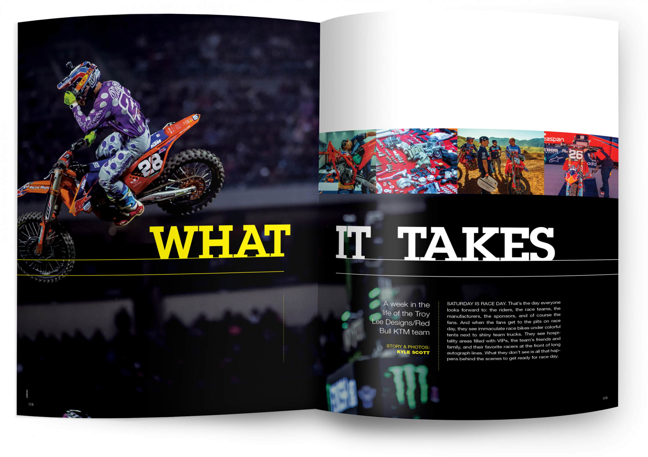 Pick up your copy now and read about what it takes to win championships and stay healthy in Monster Energy AMA Supercross, Alta Motors and their American-made electric motocross game-changer, and Blair Morgan’s return to racing after a horrific injury. Also read about what the Troy Lee Designs/Red Bull KTM team does behind the scenes every day of the week and the rising popularity of Hard Enduro-style races, where just finishing is a great accomplishment.