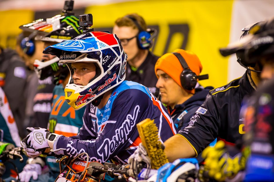 Bower’s teammate Eli Tomac also fought back after a crash in a rhythm section while pressuring Musquin for the lead. On lap 14 he went down, and it took him a moment to regroup before getting back on the track. He sat on a Tuff Block before getting back on his bike and logged a lap time of nearly two minutes. Tomac was able to get back on pace and began un-lapping himself from the field, ending the night in 15th. “That was a rough one,” Tomac said in a team statement. “I’m grateful I was able to recover from my crash tonight in order to salvage some points though. I fought hard to power back, but the track was so tacky I just wasn’t able to make up the gap in time. We’ve been through worse and I’ve got a great team behind me so we’ll take the week to shake it off and get back out there.”