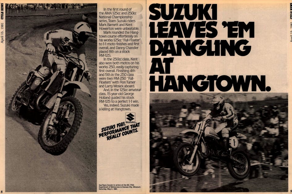 Team Suzuki's Kent Howerton won the first outdoor battle of 1981 with Yamaha's Bob Hannah as the two went at it at the Hangtown Classic, the opening round of the 1981 AMA Pro Motocross Championship. Hannah was coming back from a broken leg he suffered in September '79, costing him more than an entire season at the peak of his career. Yamaha rider Gary Semics finished third.