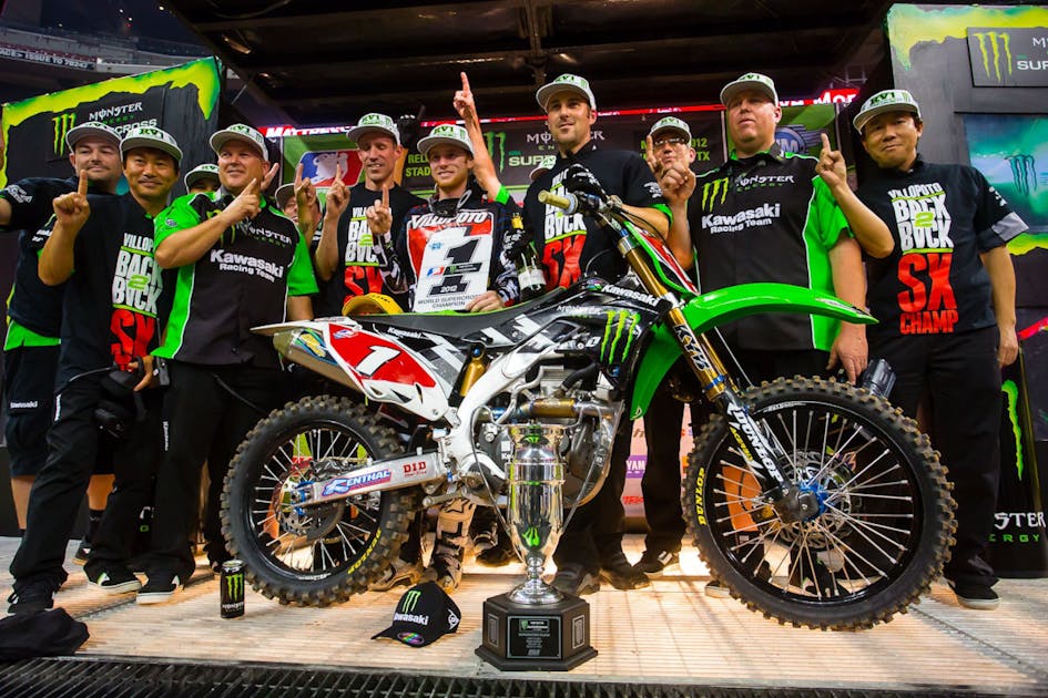 The Houston Supercross in Reliant Stadium saw defending series champion Ryan Villopoto notch another win in the 450SX Class aboard his Mike Williamson-tuned Monster Energy Kawasaki. Even though it was only the 13th round of the series, it was enough for RV to clinch the 2012 Monster Energy AMA Supercross Championship, his second in a row.