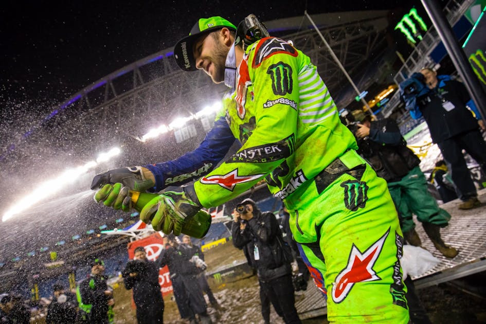 Adam Cianciarulo putting on a clinic. If you rewatch the race footage, pay close attention to his body from the waste up: He had very little movement and was staying square with the motorcycle. Dropping the elbows leads to head movement, which equals weight transfer that you don’t want. AC did a great job of keeping the elbows up and core tight to stay centered on the bike. Kids, take notes.