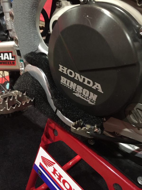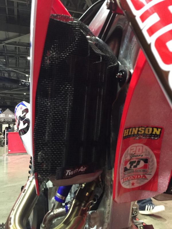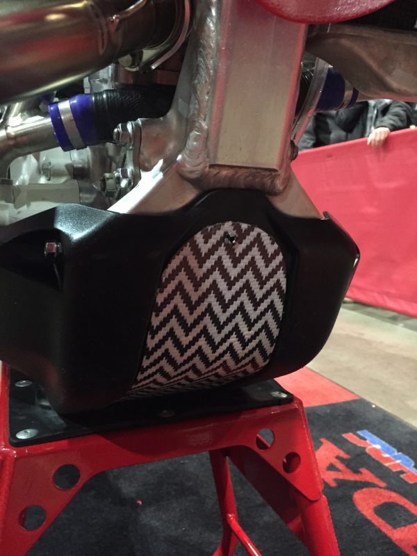 With so much mud on the track, smoked clutches were the theme of the night in Seattle. Honda HRC's Christian Craig suffered a worn clutch in the heat that forced him to go to the LCQ. With so much mud on the track, mechanics took extra measures to protect the bikes, such as installing mesh radiator covers, a skid plate, a sleeve on the rear shock, and “ski covers” on the bottoms of the forks, as well as putting foam on the rear brake pedal and under the fenders. In a team statement, Craig’s mechanic Rich Simmons commented, “The ultimate goal is to try and keep as little mud as possible from packing onto the bike.”
