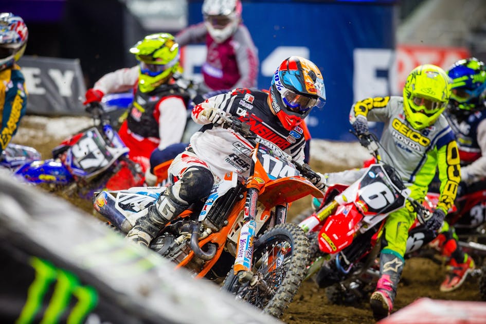 Josh Osby and John Short had career nights this past weekend in Minneapolis, both finishing in the top ten overall in the 250SX Class. In the final 250SX race of the night, Osby nailed down a pretty decent holeshot and even led the pack for the first lap while Short tallied 11-8-8 scores for eighth place overall. We found both riders hanging out in the back of the room during the post-race press conference and decided to grab a quick word with each of them. Below is a transcript of our conversations.