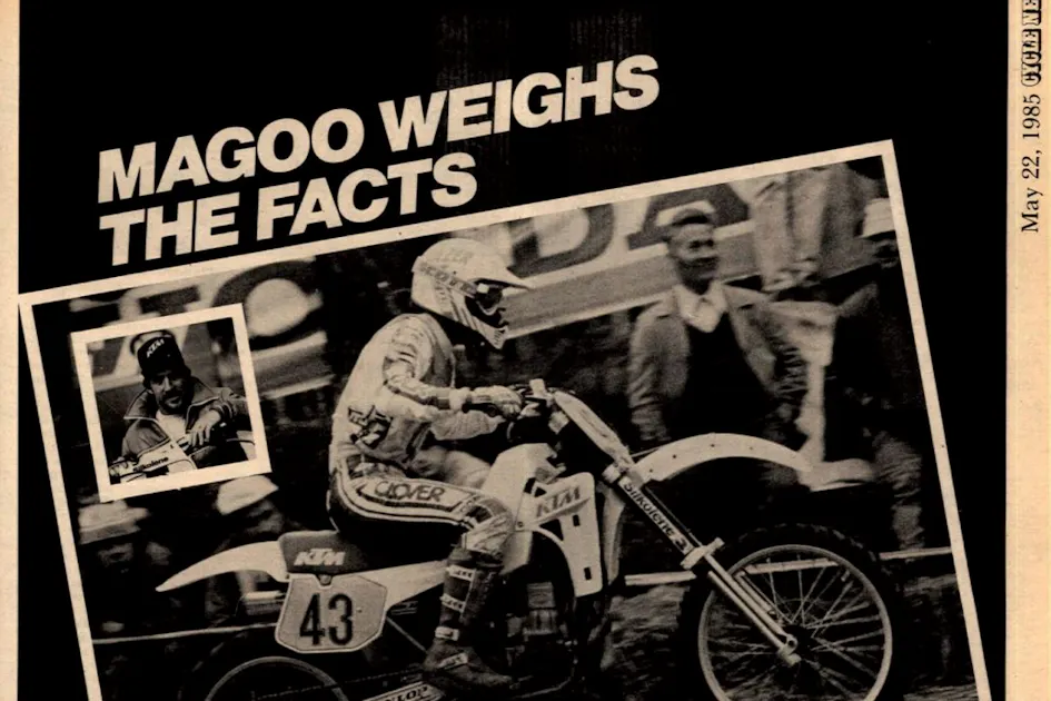 Over in France, U.S. rider Danny "Magoo" Chandler won the 500cc Grand Prix, his one and only win in his '85 season in Europe. It's only Magoo's second race on the KTM, after rocketing to fame as a Maico factory rider, then a Suzuki 125cc pilot, and finally as a Honda factory rider. Finishing behind Chandler were the mighty HRC factory trio of David Thorpe, Eric Geboers, and Andre Malherbe.