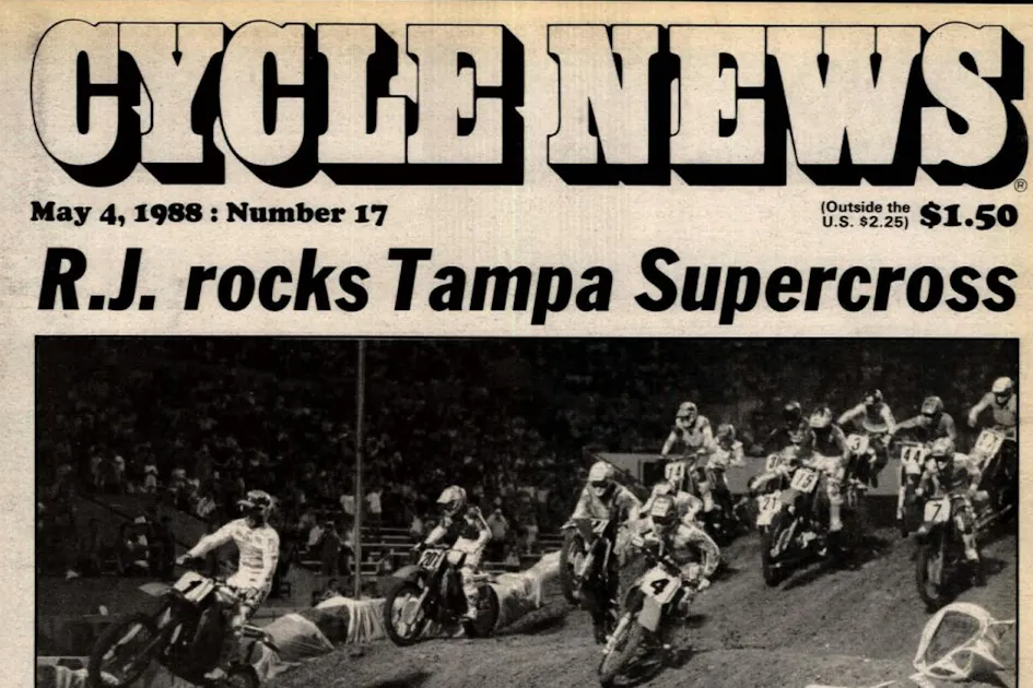 At the Tampa Supercross in Florida, Team Honda's Rick Johnson got the 250 main event win over a trio of Kawasaki riders: Jeff Ward, Ron Lechien, and Jeff Matiasevich.