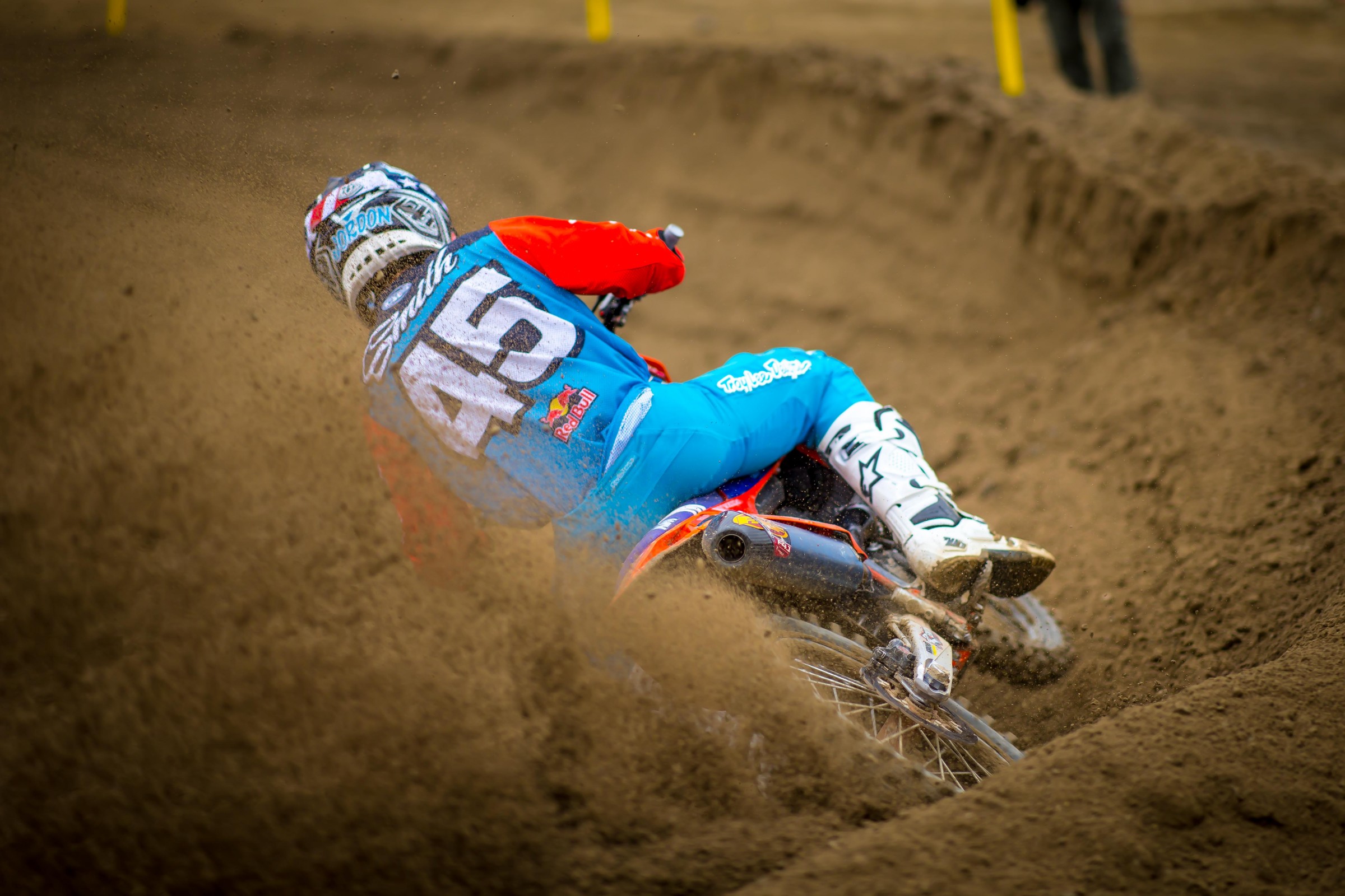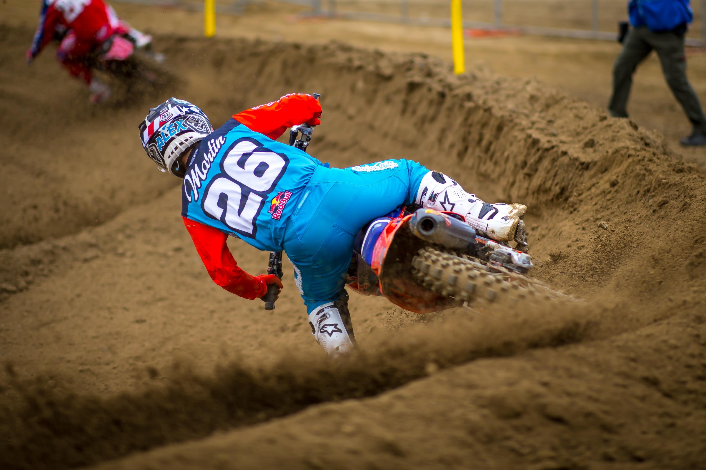 In second place A. Martin found himself under intense pressure yet again, this time from his brother Jeremy Martin and Zach Osborne. Joey Savatgy wasn’t too far behind but wasn’t close enough to join the battle. He did however pick up a spot when Osborne crashed. Moments later Osborne was trying to kick a lever back into place as he soared over the finish line jump. J. Martin put the heat to A. Martin for a long time, but A. Martin did a fabulous job of holding him off. He even went off the track at one point but still managed to retain the lead. J. Martin managed to get around him a few turns later though and rode to a comfortable second. Savatgy finished fourth, while Osborne rounded out the top five.