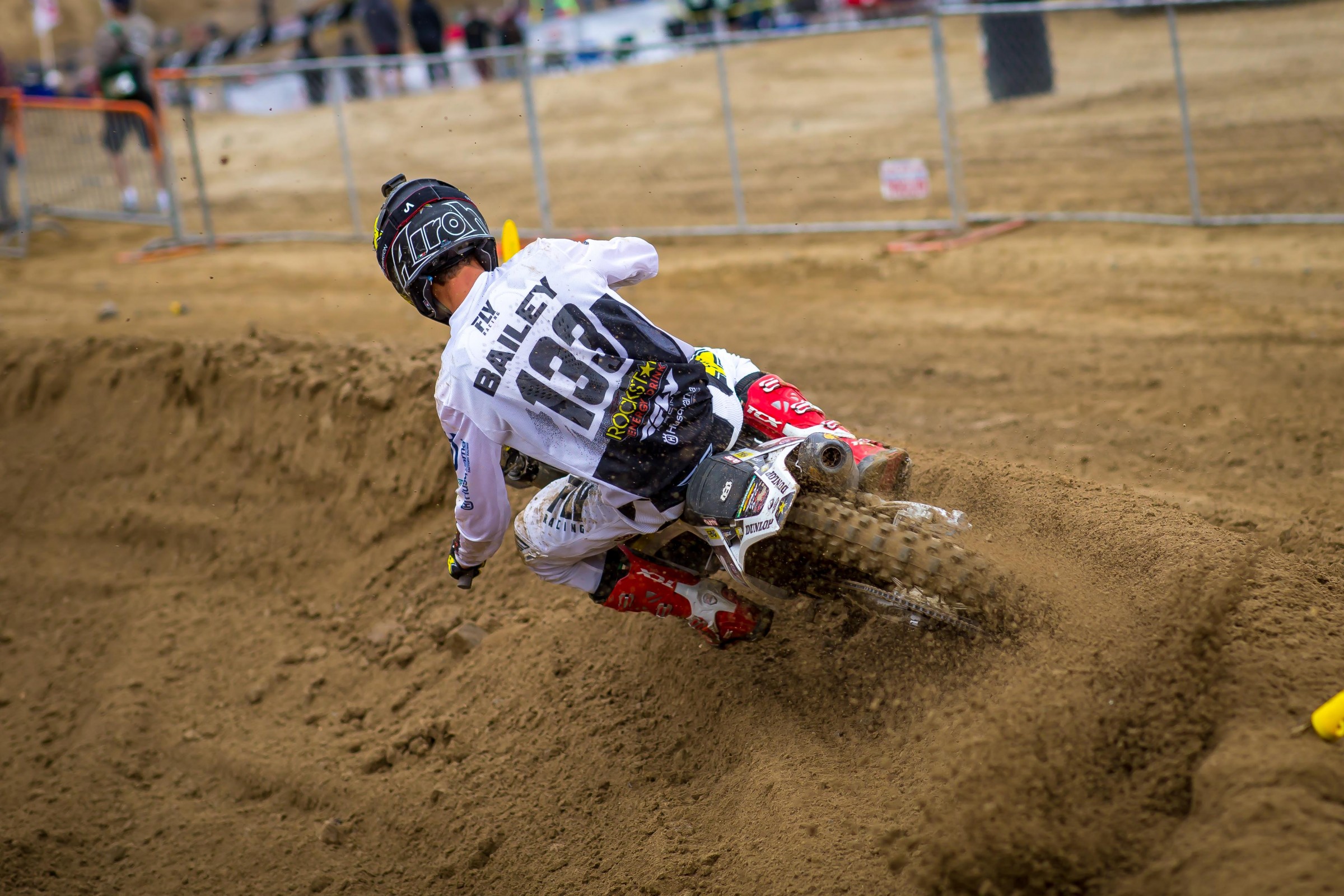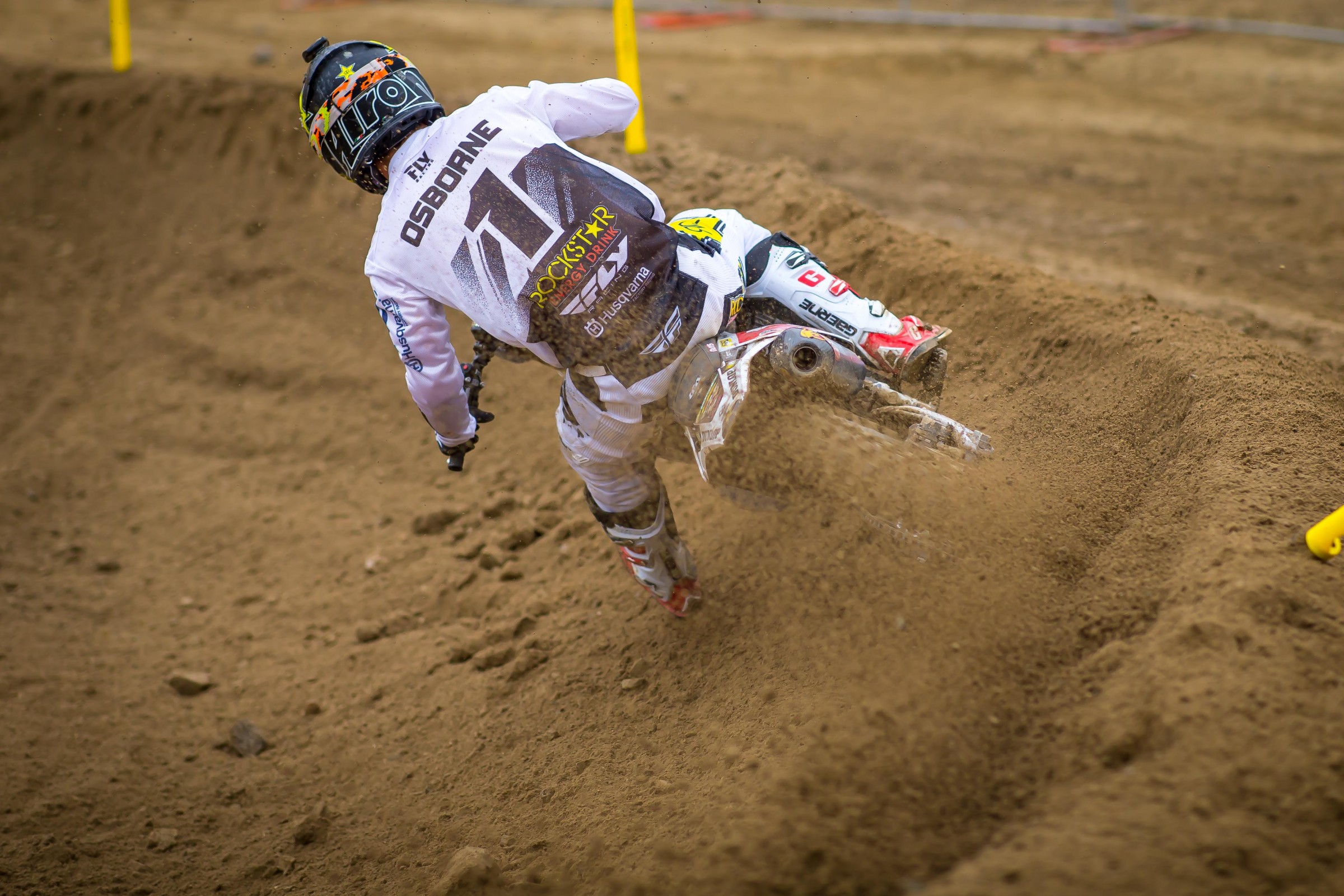 Zach Osborne kicked things off with a holeshot, but quickly got shuffled back a couple spots, and Aaron Plessinger emerged as the early leader. Plessinger put his head down early and started pulling a gap. Second-place Osborne would eventually stabilize that gap, and it even seemed like he was reeling Plessinger in a bit in the late stages off the moto, but then he had a small crash, which gave Plessinger more space than he knew what to do with and allowed him to cruise to victory. Fortunately for Osborne he still had plenty of room between himself and Alex Martin in third and he was able to ride to a comfortable second place.